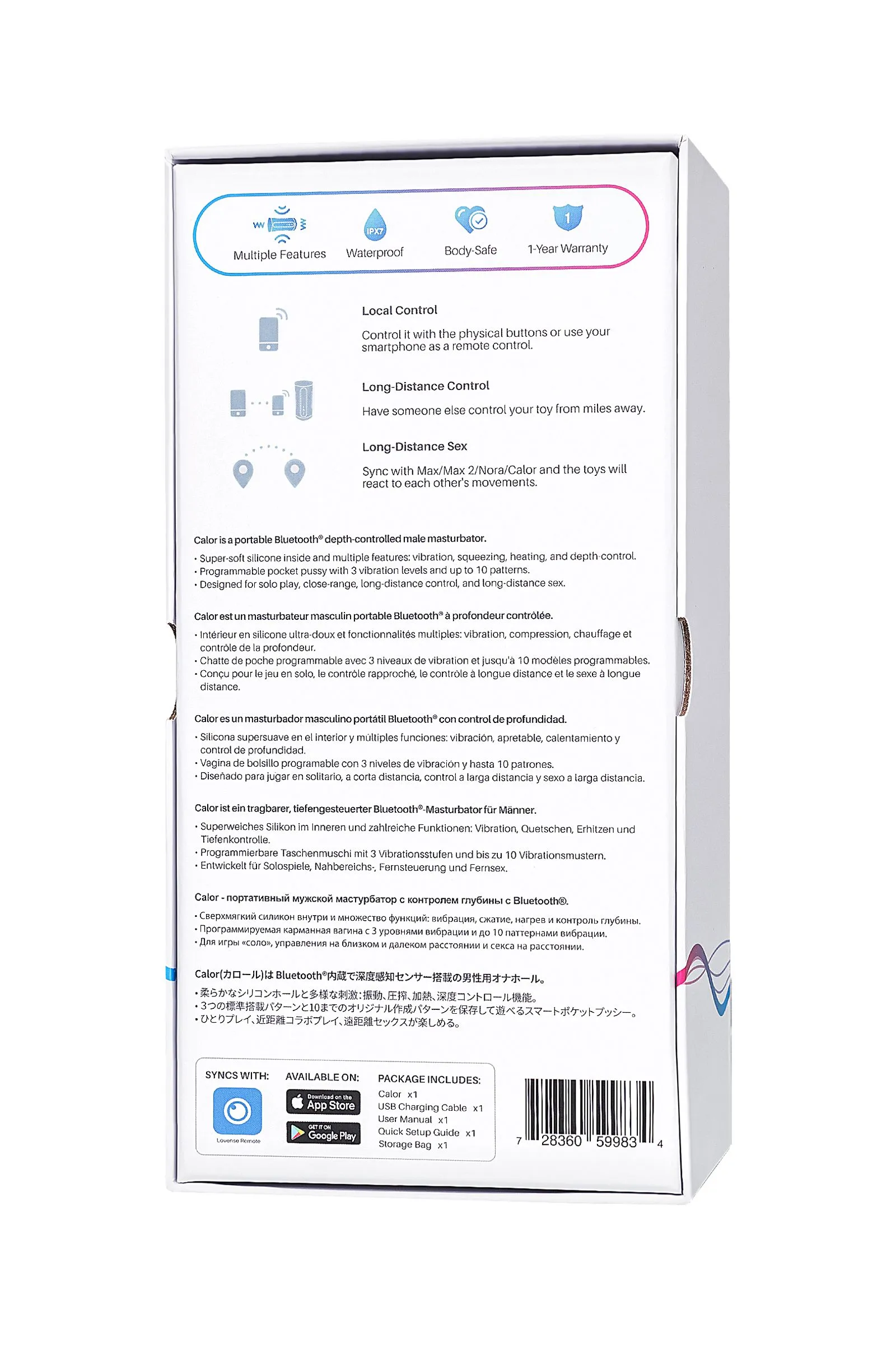 Мужской мастурбатор Lovense Calor покажет что значит горячий прием. Специальная возможность нагрева позволяет по-новому испытать ощущения от мастурбации. Комфортная температура приближена к теплу человеческого тела. Небольшой легкий мастурбатор Calor комфортно помещается в мужской руке. Внутренняя часть игрушки сделана из силикона, что воссоздает естественные ощущения при проникновении, особенно с функцией нагрева. Calor подходит большинству мужчин и имеет возможность контроля сжатия захвата, чтобы каждый пользователь мог регулировать интенсивность давления собственноручно. Инновационная игрушка с контролируемой глубиной давления - это значит что мастурбатор Calor отзывается и реагирует на глубину проникновения. Чем глубже - тем ощутимее вибрация. Таким образом игрушка стимулирует и подыгрывает каждому движению пениса. Внутренние датчики позволяют настроить индивидуальные режимы вибрации в зависимости от индивидуальных параметров длины и скорости пользователя. В распоряжении пользователя 7 встроенных режимов вибрации, управляется кнопками на панели игрушки. Расширить количество возможностей получения удовольствия легко с помощью смартфона и специальных приложений Lovense. Дополнительные функции в виде создания всевозможных паттернов и режимов вибраций, даже под любимые треки и звук голоса. Передать управление партнеру на расстоянии или подключить виртуальную услугу - Lovense использует инновационные технологии для получения новых ощущений и удовольствия. 7 режимов вибрации время работы до 130 минут время зарядки 90 минут водонепроницаемость IPX7 магнитная зарядка USB в комплекте мешочек
