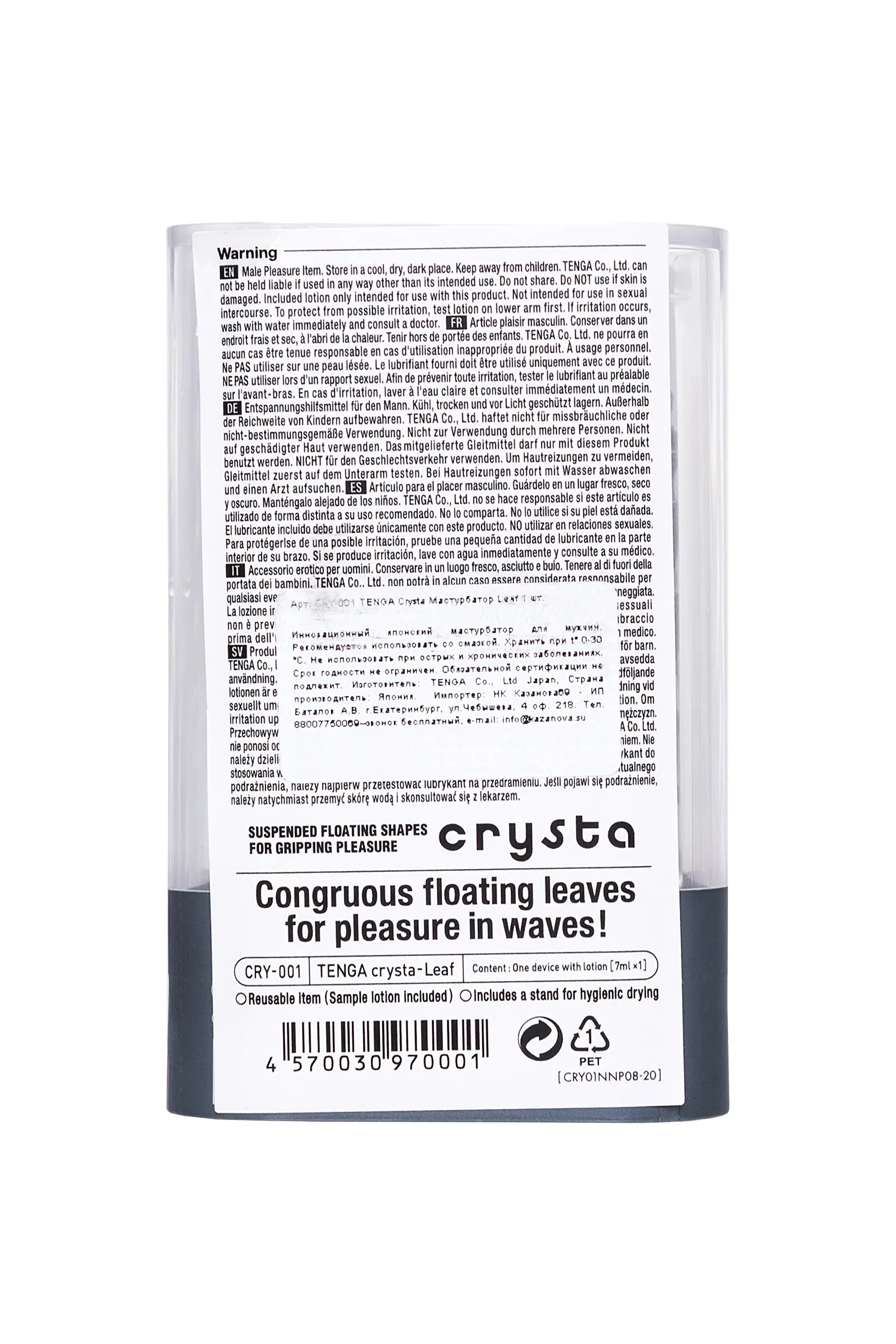 Функциональная форма и футуристичный дизайн делают коллекцию Tenga Crysta настоящим произведением искусства среди мужчских мастурбаторов. В динейке представлены три мастурбатора с различными рельефами. Текастура Leaf состоит из множества ребер разной ширины, расположенных вдоль узкого входного канала.