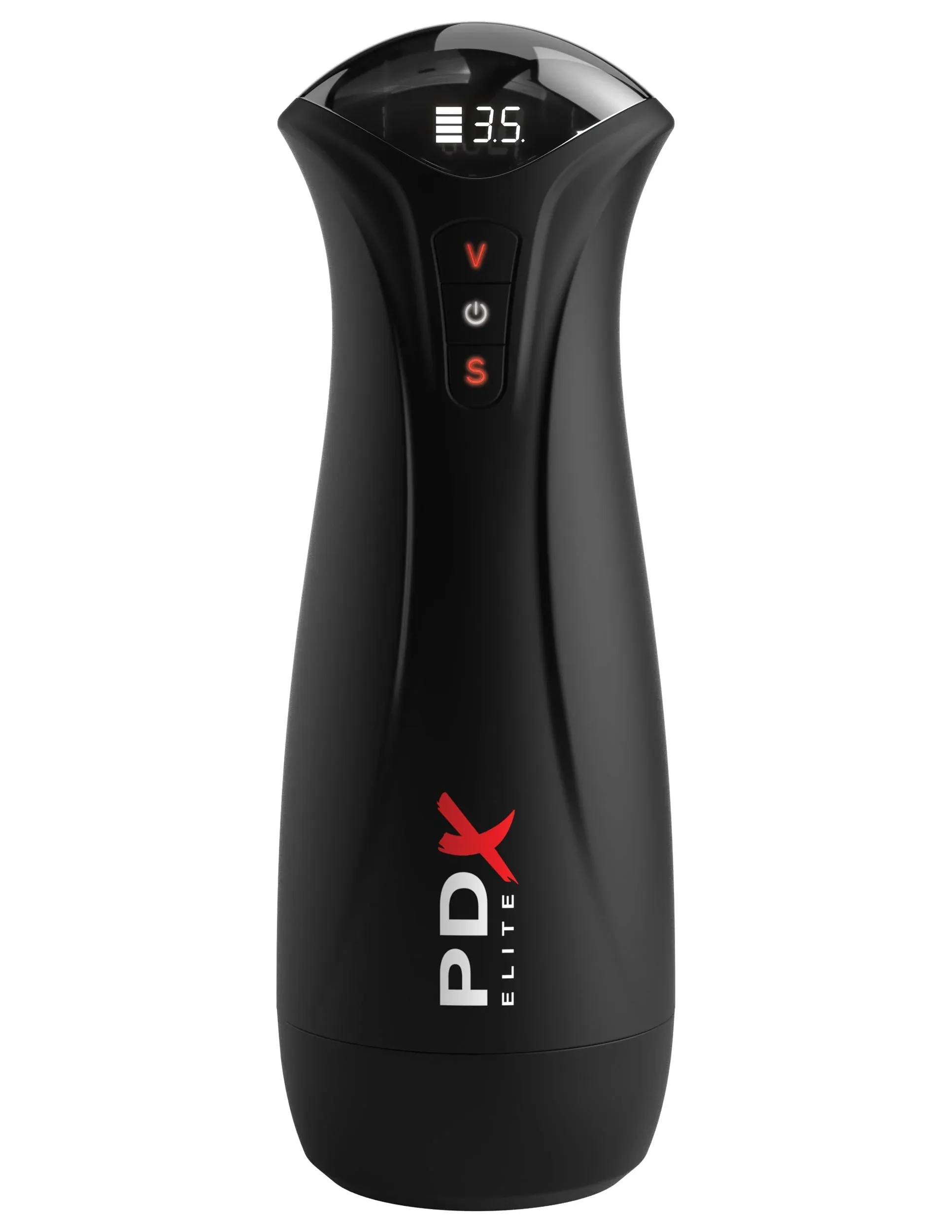PDX ELITE Fuck-Gasm — мастурбатор с всасыванием и вибрацией (вес 0,7 кг). Прерывистое всасывание двигает член, текстурированный тоннель усиливает ощущения. Подходит для использования без рук.