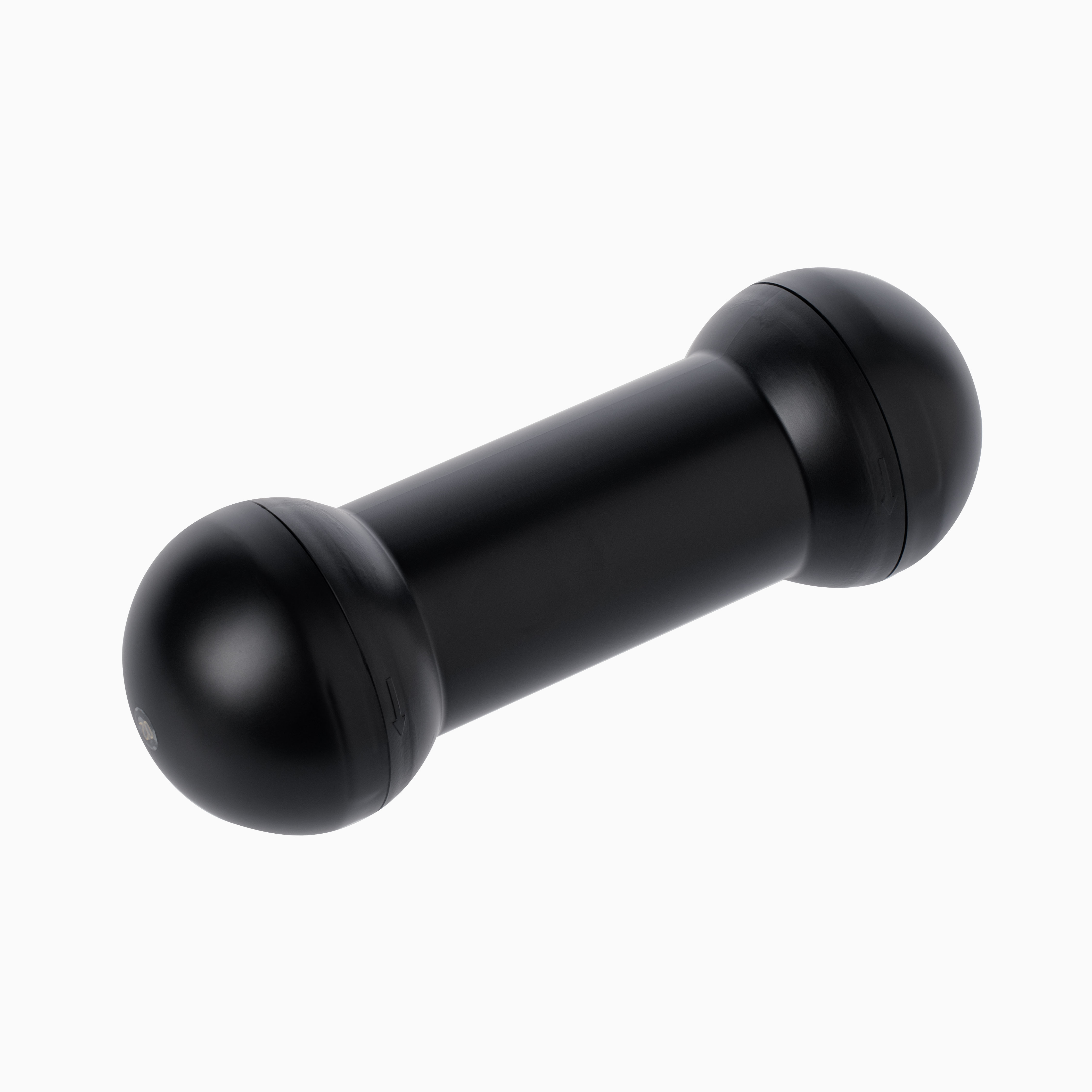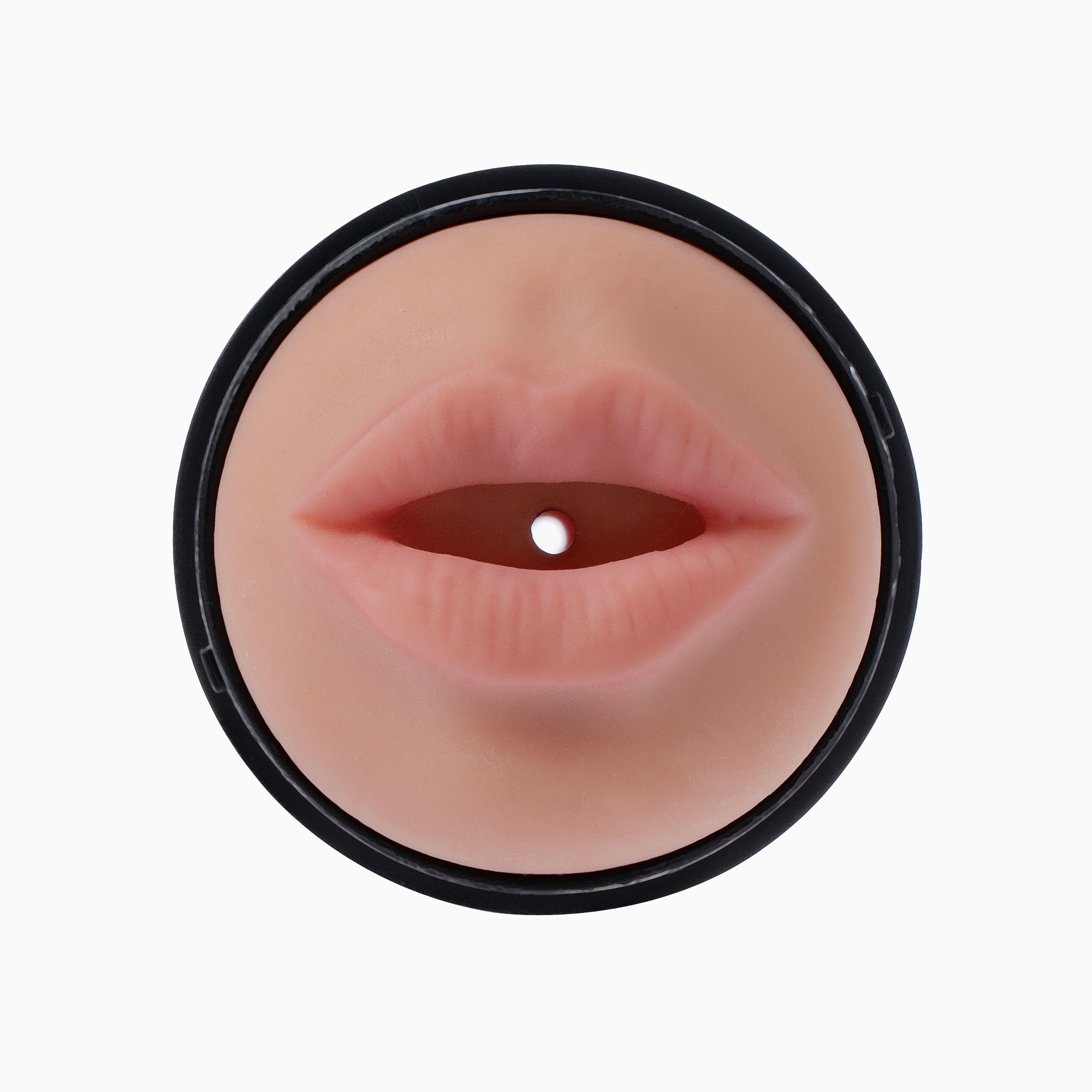 Мастурбатор с двумя отверстиями с разных сторон: с одной - вагина, с другой - ротик. Изделие помещено в жесткую колбу черного цвета.