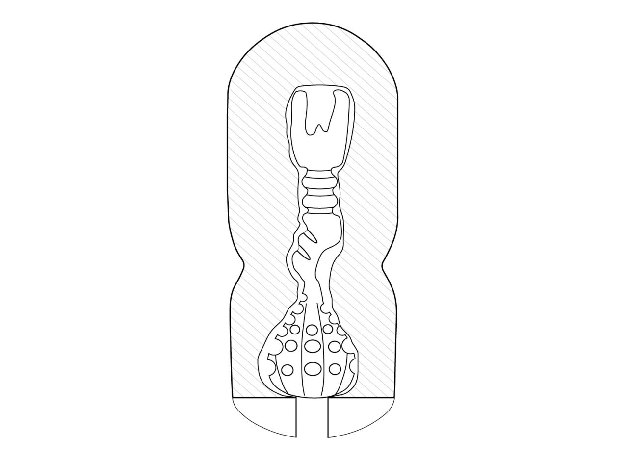 Внутренний рукав наполнен многофункциональными выпуклостями и уникальным рельефом. Начинается все с узкой дырочки, которая предвещает настоящий бум страсти. Затем твоего "дружка" встречает отсек с ребристым и круглым рельефом. А затем самое интересное! Узкий длинный тоннель, который закручивается и сливается воедино с твоим телом, тебе буквально придется проталкивать член по этому ребристому каналу. Рельеф выполнен таким образом, чтобы стимулировать не только основной ствол члена. Ты сможешь ласкать уздечку полового члена, или даже головку!