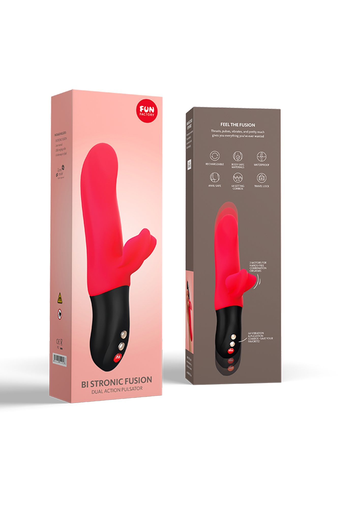 Пульсатор Fun Factory Bi Stronic Fusion — идеальный любовник: •    Его многофункциональность поражает: пульсатор совмещает в себе мощный клиторальный вибратор, массажёр точки G или простаты, а также стимулятор влагалища, половых губ или ануса. •    Его инновационный принцип работы позволяет насладиться и вибрацией, и пульсацией, которые могут работать вместе или независимо друг от друга. •    Его интуитивно понятная панель управления молниеносно отзывается на любое желание, в том числе на мгновенную остановку. •    Его расширенный функционал — светящийся индикатор заряда аккумулятора и блокировка замка — помогает держать удовольствие под контролем. •    Его водонепроницаемая поверхность никогда не откажет в совместном принятии расслабляющей ванны. •    Его зарядка от USB-провода быстро возвращает разрядившуюся игрушку в строй. С пульсатором Fun Factory Bi Stronic Fusion жаркие оргазмы станут постоянными спутниками интимных сессий!