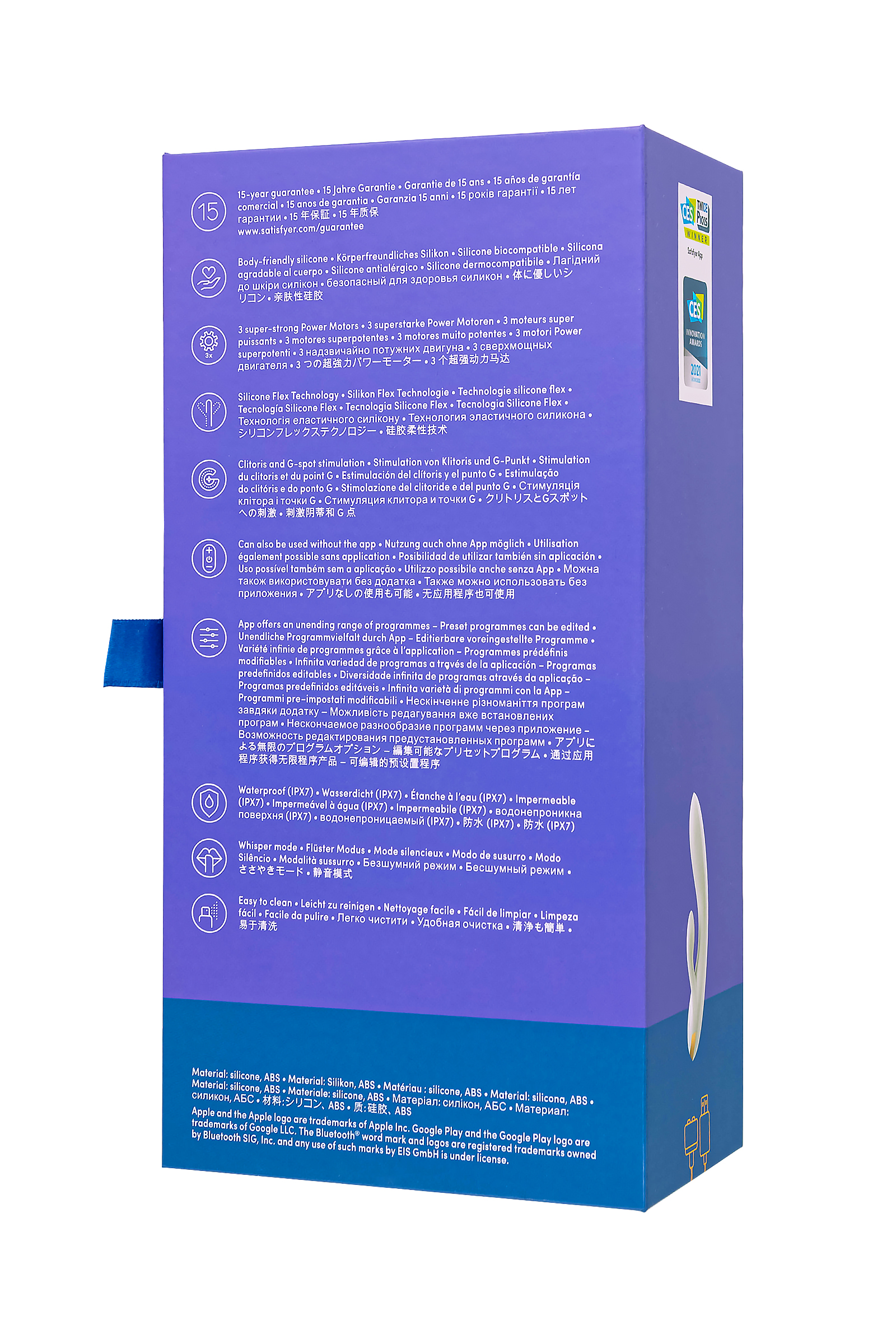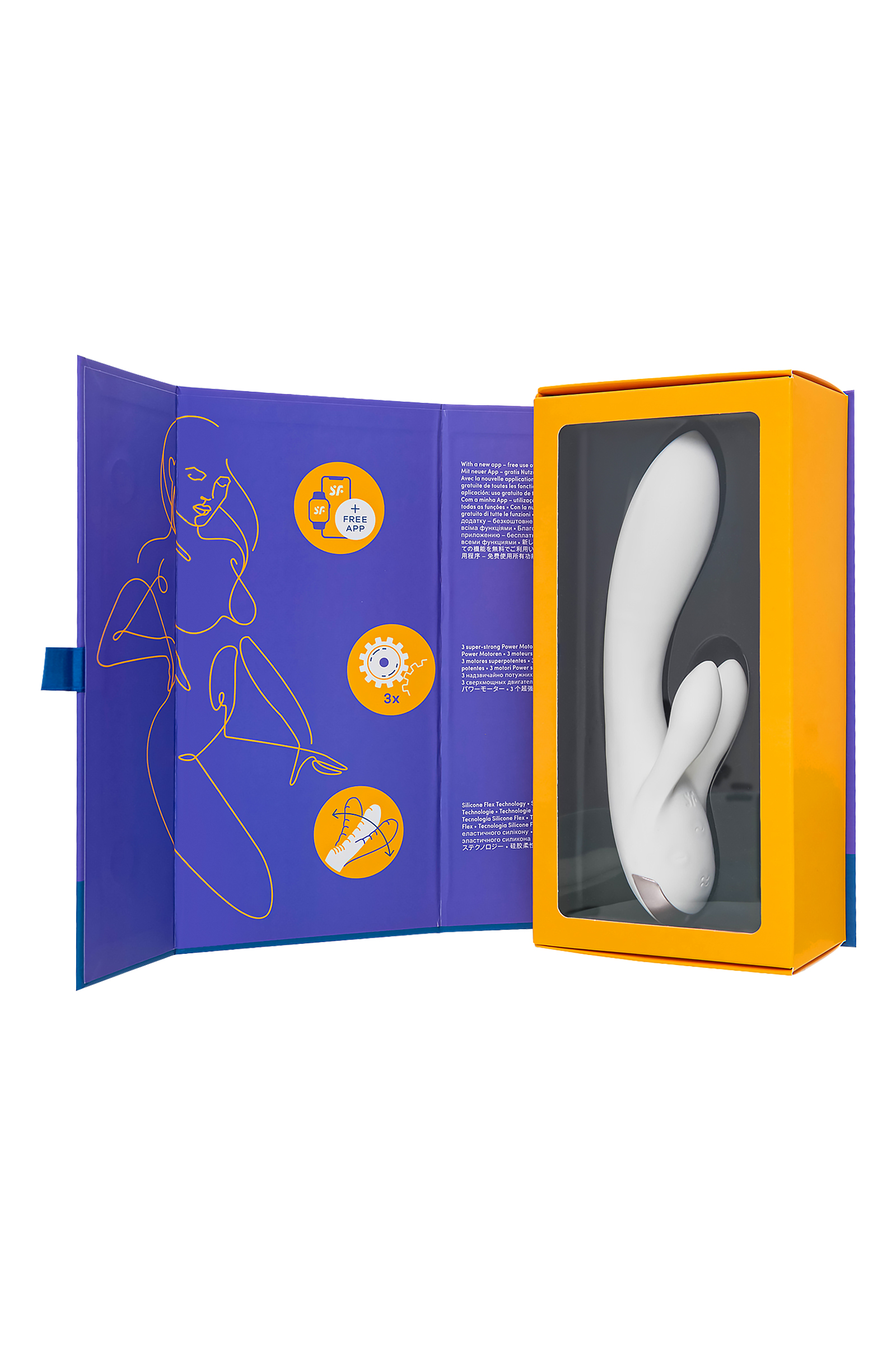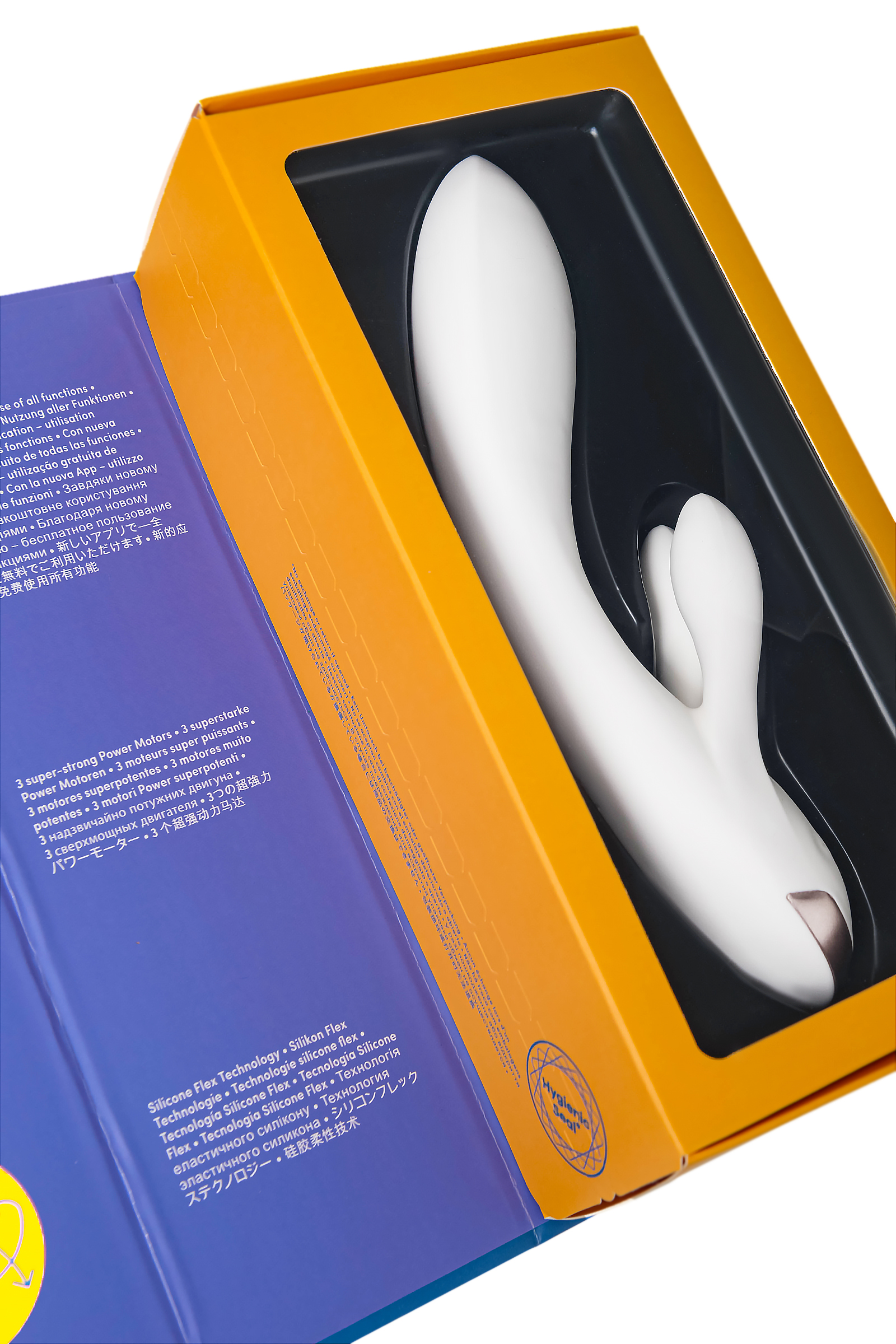Позвольте себе тройной заряд энергии и наслаждения с вибратором Double Flex от Satisfyer. Этот кролик с тремя сверхмощными моторами погружает в мир одновременной стимуляции точки G и клитора. Гибкий Double Flex легко подстраивается под вашу анатомию, создавая уникальный контур, благодаря технологии Silicone Flex. Клиторальный отросток разделен на два ушка, которыми он обнимает клитор и дарит захватывающее удовольствие половым губам. Вариативность использования радует разнообразием – клиторальные и вагинальный отростки могут работать в разных ритмах. В вашем распоряжении 12 предустановленных режимов вибрации. Испытайте удовольствие по-настоящему с бесплатной функцией управление при помощи смартфона с поддержкой Bluetooth через приложение Satisfyer Connect, доступное на Android и iOS. Создавайте собственные уникальные режимы вибрации, существенно расширив возможности предустановленных режимов. Девайс способен вибрировать даже в такт музыке. Satisfyer Connect не имеет границ – передавайте управление наслаждением партнеру даже на большом расстоянии. Плавные изгибы и эргономичная форма обеспечивают легкое проникновение. Double Flex удобно лежит в руке и радует своим стильным и элегантным дизайном. Шелковистое силиконовое покрытие — фирменный знак Satisfyer, тактильно нежный и приятный на ощупь, он быстро адаптируется к температуре вашего тела. Длина вагинальной части 15,5 см, а диаметр – 3,4 см, что делает кролика идеальным вариантом для первой игрушки. Ощутите все прелести влажных приключений, ведь благодаря водонепроницаемой оболочке IPX7 Double Flex не только легок в уходе, но и безопасен для использования в ванне и душе. Чтобы получить максимум удовольствия и сохранить материал в наилучшем виде, рекомендуется пользоваться качественной смазкой на водной основе. После использования обязательно очищайте вибратор теплой водой со специальными бактерицидными спреями для интимных товаров. Особенности: 3 мощных мотора и вибрация по всей игрушке 2 клиторальных отростка 12 режимов вибрации и неограниченное количество режимов в приложении Satisfyer Connect с подключением через Bluetooth. Стильный современный дизайн и нежный, эластичный силикон без запаха, без аллергенов и вредных для здоровья веществ. Водонепроницаемый (IPX7) Идеальный вариант для первой игрушки Перезаряжаемый, магнитный USB-кабель. 15 лет гарантии от производителя.