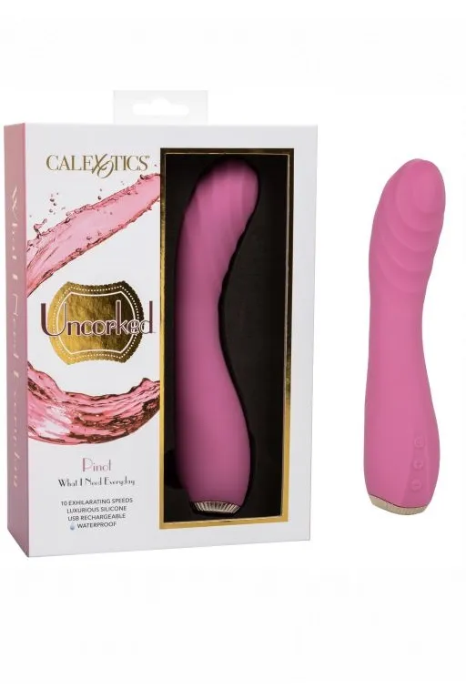 Uncorked Pinot - шикарный вибромассажер цвета вина Пино-нуар с ребристой структурой и изогнутым наконечником, идеально стимулирующим точку G. Он изготовлен из гиппоаллергенного мягкого силикона премиум-класса безопасного для тела, не содержащего фталатов, обеспечивающего приятные и гарантировано безопасные тактильные ощущения.