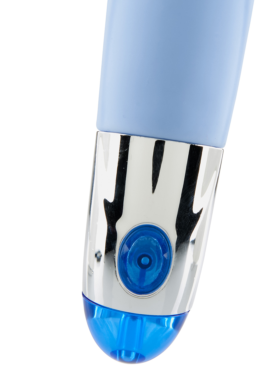 Вибростимулятор нежно голубого цвета с рельефной поверхностью,расширяется к вверху. Несколько режимов работы вибрации и пульсаци,управляются с помощью кнопки ,расположенной у основания вибратора.Материал силикон- необычайно приятный на ощупь,без запаха.Работает от 2-х батареек типа ААА( не идут в комплекте) .Общая длина 18,5 см, рабочая длина 14,5 см,диаметр максимальный 3,5см.