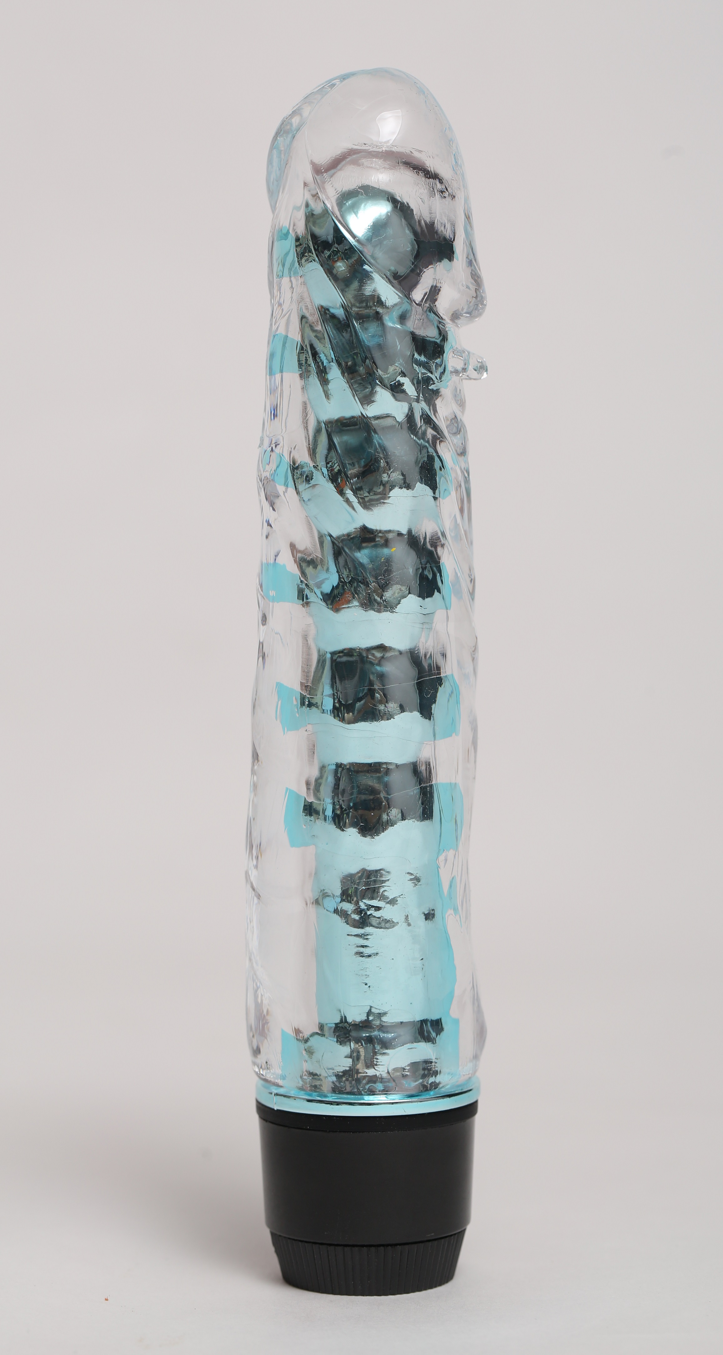 Голубой вибромассажёр, имеет классическую форму. Необычайно приятный, прозрачный материал, вибратор оснащен допольнительными пупырышками под головкой для особенных ощущений. Степень вибрации регулируется при помощи кнопки, расположенной в основании. Работает от 2-х батареек АА (нет в комплекте). Общая длина – 17,5 см, максимальный диаметр -3,5 см.