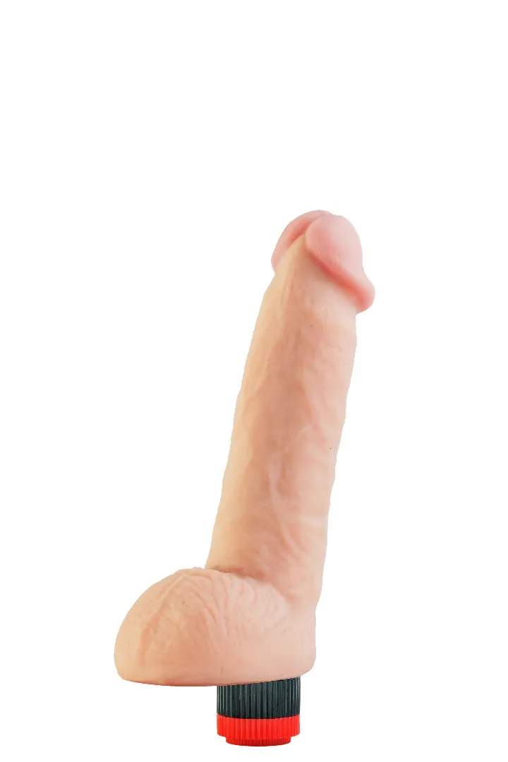 Вибратор-реалистик телесного цвета. Имеет форму члена с ярко-выраженной головкой и мошонкой, рельефный, выполненный из материала неоскин, не имеет швов. Скорость вибрации регулируется кнопкой у основания изделия. Характеристика: работает от 2АА батареек (нет в комплекте), общая длина – 24 см, рабочая длина-16 см, максимальный диаметр -5 см, без запаха, упакован в пленку.