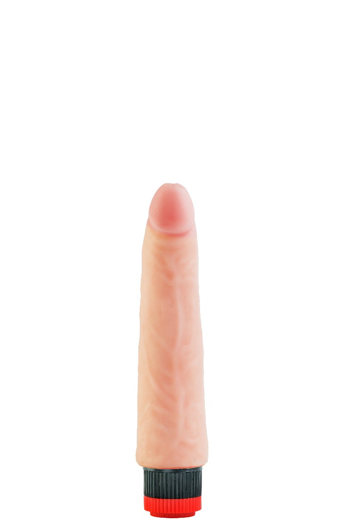 Вибратор-реалистик телесного цвета. Имеет форму члена с ярко-выраженной головкой, рельефный, выполненный из материала неоскин, не имеет швов. Скорость вибрации регулируется кнопкой у основания изделия. Характеристика: работает от 2АА батареек (нет в комплекте), общая длина – 21 см, рабочая длина- 18 см, максимальный диаметр- 4,5 см, без запаха, упакован в пленку.