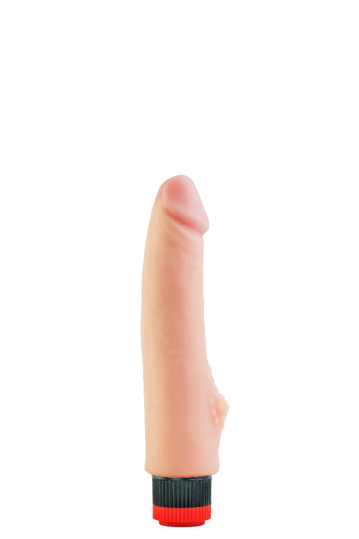 Вибратор-реалистик телесного цвета. Имеет форму члена с ярко-выраженной головкой, рельефный, выполненный из материала неоскин, не имеет швов. Скорость вибрации регулируется кнопкой у основания изделия. Характеристика: работает от 2АА батареек (нет в комплекте), общая длина – 22 см, рабочая длина- 19 см, максимальный диаметр- 5 см, без запаха, упакован в пленку