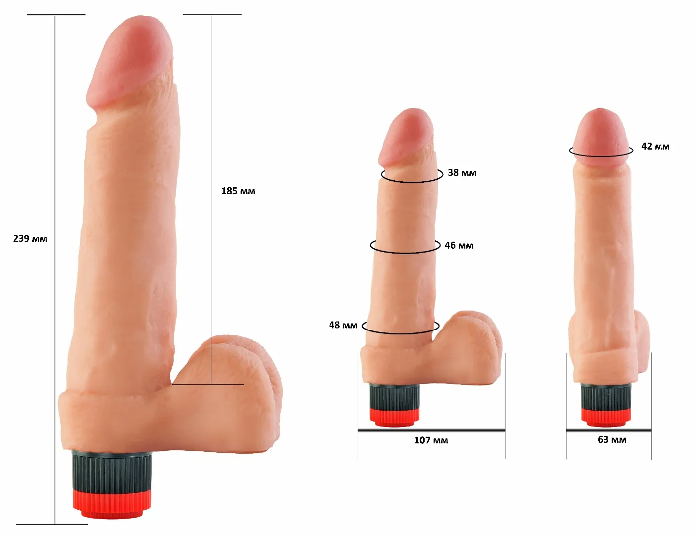 Реалистичный фаллоиммитатор cгибается до 60%, эластичный. Нежные, но в то же время упругие яички. Мягкая головка, залитая гелем. Пищевая краска на головке, которая смывается после первого использования. Это показатель того, что изделие в первых руках. Встроенный вибромеханизм с регулятором интенсивности вибрации на самом изделии.