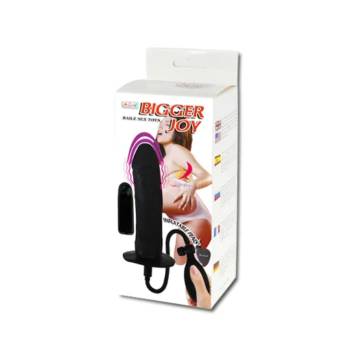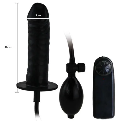 Фалоимитатор черного цвета в упаковке. Имеет выносной пульт управления и грушу для накачивания. Общая длина - 15,5 см, рабочая длина - 15 см, максимальный диаметр 4 см. Батарейки в комплект не входят.