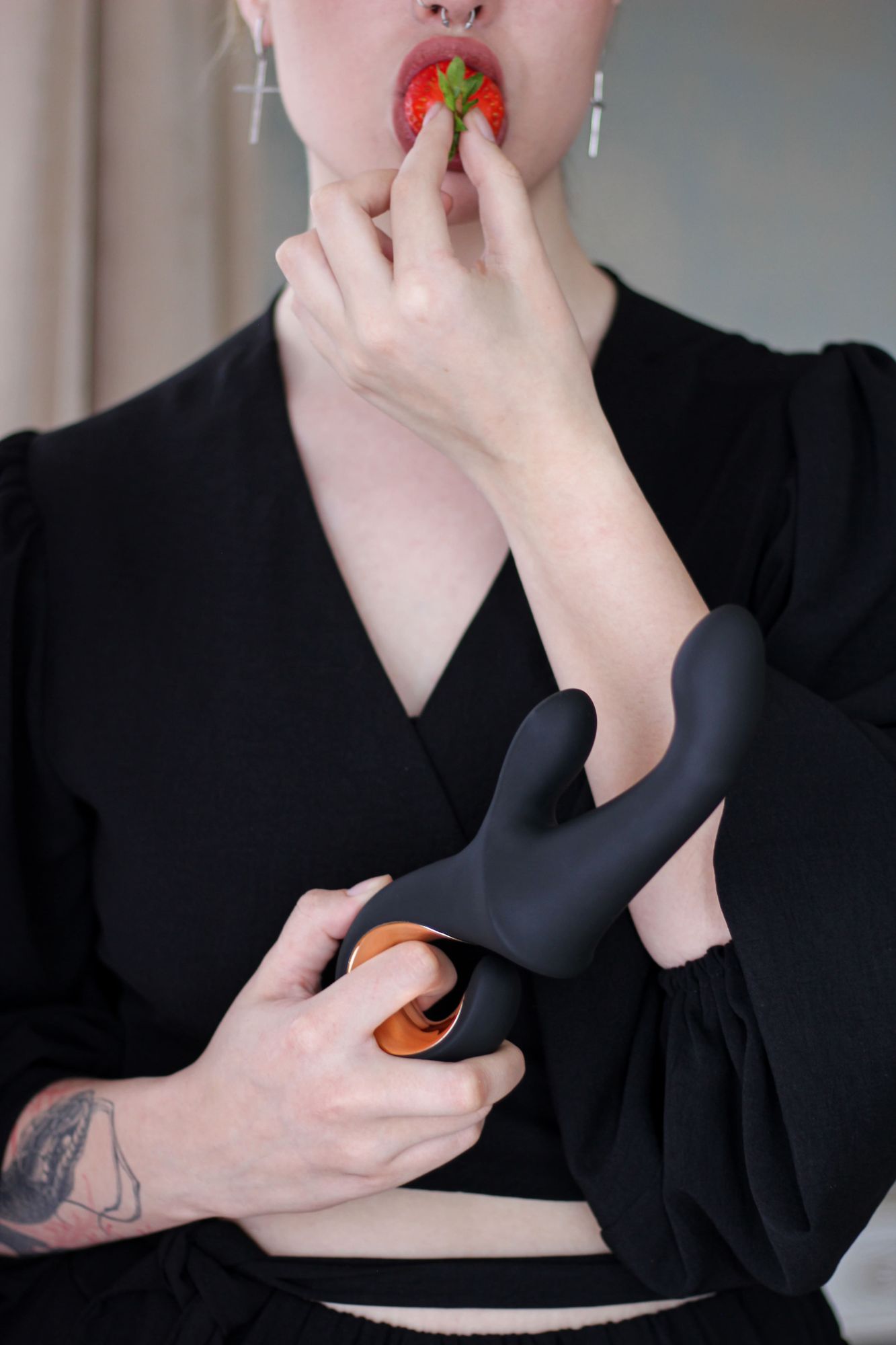 Клиторальный лепесток здесь — как отдельный инструмент наслаждения. В нём запрограммированы 10 различных режимов вибрации, от трепещущей пульсации до глубокого, мощного ритма, который буквально пронизывает всё тело. Самое важное — клиторальная стимуляция и внутренняя работа кончика управляются независимо. Это значит, что вы сами создаёте комбинации, подбираете уникальные сочетания, находите именно то, что подходит вашему телу в данный момент. Иногда достаточно мягкого движения внутри и лёгкого покалывания снаружи, а иногда хочется настоящего шторма, когда оба двигателя работают на пике.
