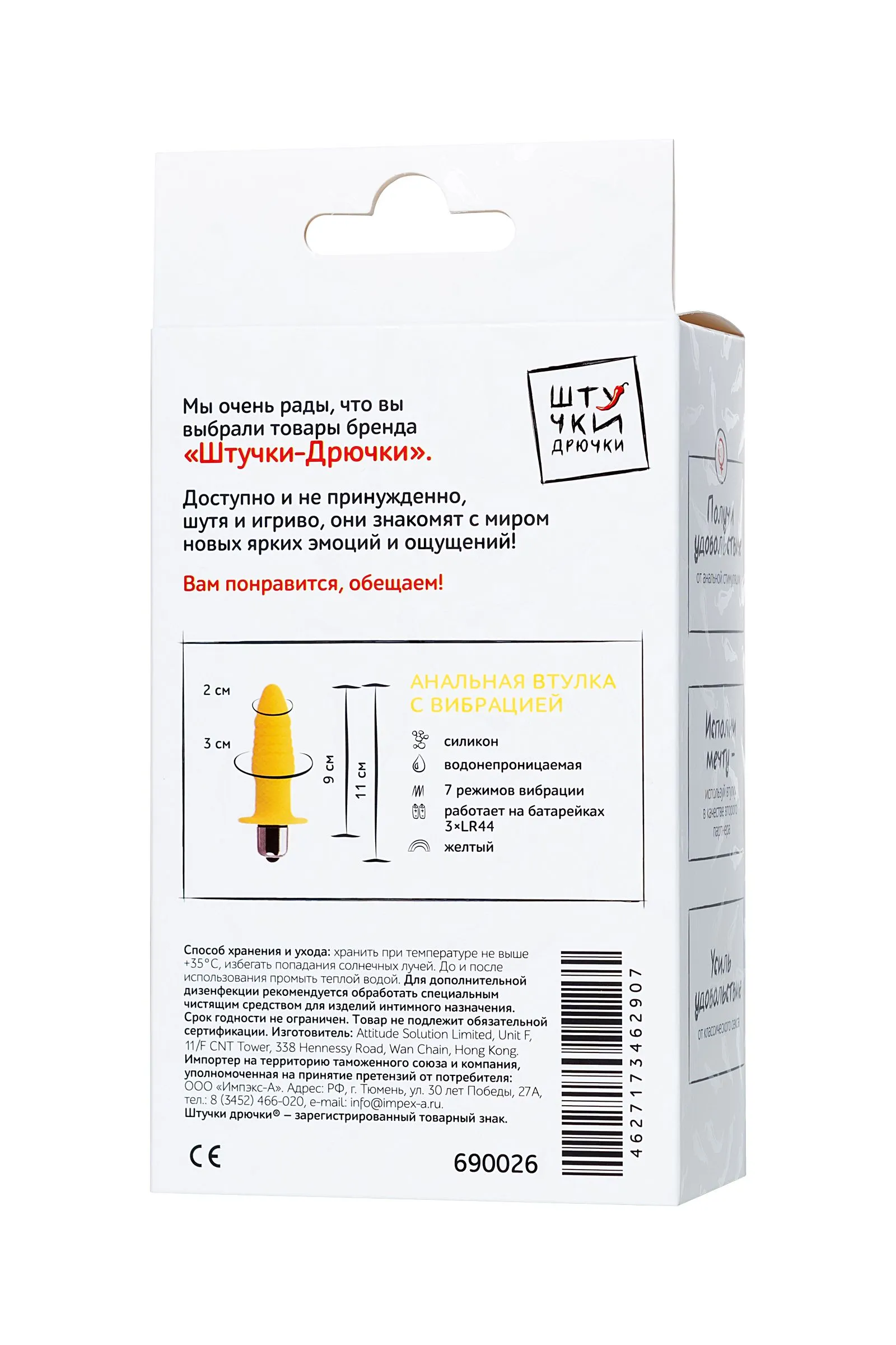 Анальная втулка с вибрацией «Штучки-Дрючки» превращает подготовку к анальному сексу в возбуждающую игру: Закругленный кончик и эргономичная форма игрушки делают введение безболезненным и приятным даже для новичков. Небольшой диаметр втулки деликатно знакомит с новыми ощущениями, а рельеф позволяет партнеру получить еще больше удовольствия во время вагинального проникновения. Вибрация помогает расслабиться и задействовать множество чувствительных точек, в разы усиливая удовольствие от анальной стимуляции. Пикантная прелюдия, игры соло или в паре, реализация фантазий о двойном проникновении — с анальной втулкой «Штучки-Дрючки» каждый эксперимент будет удачным.