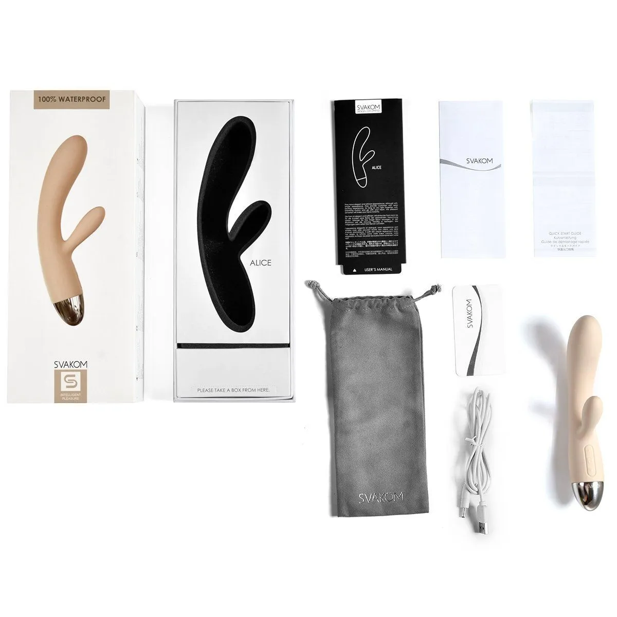 Alice - это элегантный вибратор от компании Svakom, выполненный из приятного на ощупь медицинского силикона. В этой игрушке два вибрирующих элемента находятся в головке и в клиторальном отростке, что не может не отражаться на ощущениях от вибрации.