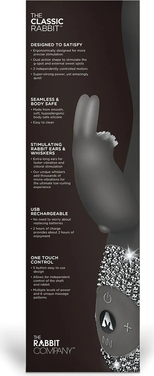 Вибратор The Rabbit Company Classic Crystal, черный