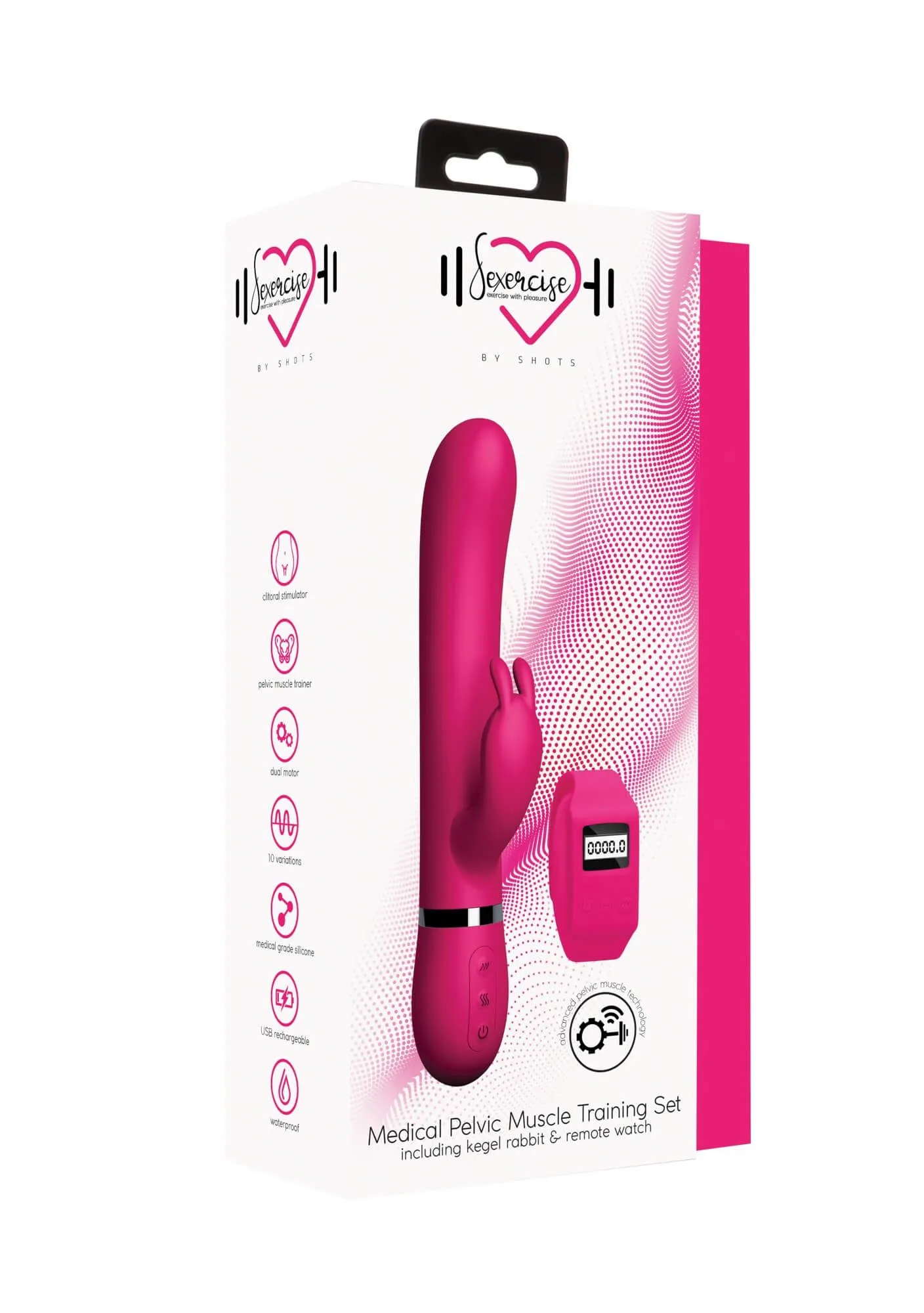 Kegel Rabbit сочетает в себе функциональность тренажера Кегеля и вибратора с дистанционным пультом управления. С ним Вы сможете поддерживать мышцы тазового дна в тонусе и получать удовольствие во время тренировок! У него есть два мотора, один из которых расположен в стволе с загнутым кончиком, а второй - в стимуляторе в виде зайчика, который будет нежно ласкать клитор своими вибрирующими ушками. Благодаря одновременной стимуляции клитора и влагалища ощущения от интимного массажа станут более яркими и позволят быстрее достичь оргазма. У обоих моторов есть 10 режимов вибрации, переключающихся кнопками на корпусе игрушки или на браслете.
