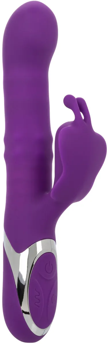 Enchanted Flutter - – перезаряжаемый вибромассажер с клиторальным отростком в форме бабочки. Изготовлен из бесшовного, гипоаллергенного, безопасного для тела, не содержащего фталатов силикона премиум-класса, не имеет без запаха. Два мощных мотора обеспечивает 12 интенсивных режимов вибрации, на 4 функции возвратно-поступательных движений и стимуляцией бусинами по центру ствола.