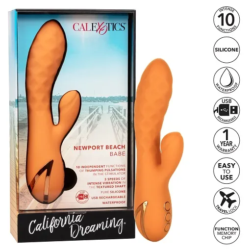 Вибромассажер Newport Beach Babe – перезаряжаемый мульти скоростной вибратор кролик из бесшовного материала с дополнительной обработкой. Вагинальный отросток у этой модели имеет текстурированную форму и 3 скорости «пульсирующего воздействия». Клиторальный отросток имеет отдельный мощный виброэлемент, обеспечивающий 10 режимов интенсивной вибрации.