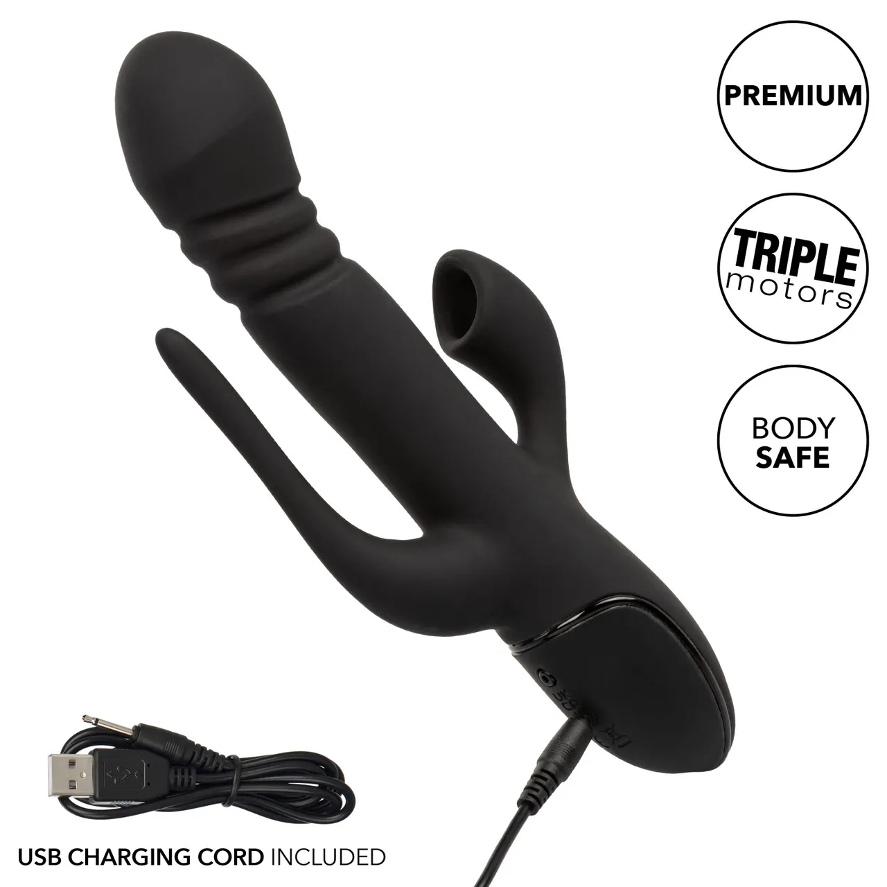 III Triple Euphoria - вибромассажер с тройной стимуляцией! Этот вибратор имеет 3 мощных двигателя и обеспечивает 3 скоростями поступательного движения основного ствола, 10 функциями вибрации анальной зонда и 10 функциями всасывания клиторального отростка. Игрушка может одновременно стимулировать вагинальную, анальную и клиторальную зоны. Стимуляция на отростках может работать одновременно и по отдельности.