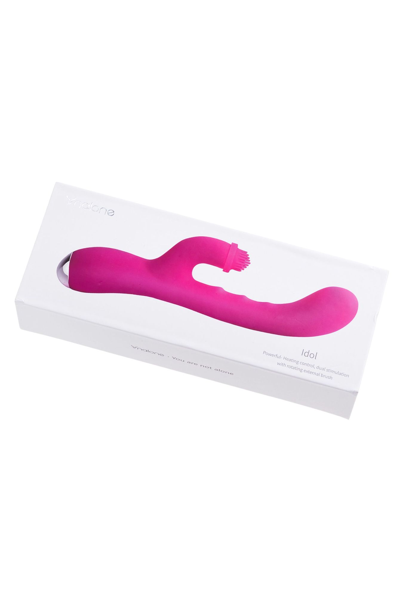 Nalone Idol – совершенство в мире удовольствия. Idol по праву можно назвать жемчужиной в коллекции Nalone. Множественная стимуляция, ротация, подогрев и мощные оргазмы – этой игрушке есть чем удивить даже самых продвинутых пользователей. • Гибкий и рельефный ствол дарит чувственное проникновение и искусную стимуляцию эрогенных зон как снаружи, так и внутри; • слегка увеличенная загнутая головка обеспечивает интенсивный массаж точки G, накрывая волнами наслаждения снова и снова; • с помощью функции ротации клиторальный отросток ласкает клитор нежными кисточками и приводит к взрывной кульминации; • и самое интересное – это функция подогрева. Добавьте страсти в ваши сексуальные игры! Разогреваясь до температуры 40-42 градусов, игрушка делает ласки гораздо жарче, а оргазм – ярче. Приятным дополнением станут 7 режимов разнообразной вибрации, водонепроницаемость и нежный гипоаллергенный силикон. Вибратор Nalone Idol – искушение, от которого невозможно отказаться.