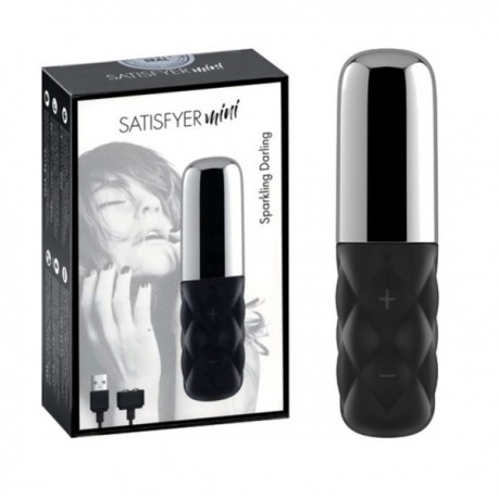Вибратор Satisfyer Mini Sparkling Darling - Невелик, но дарит огромные эмоции! В его небольшом силиконовом корпусе скрывается недюжинная сила: 5 скоростей и 10 разных режимов вибрации. Режимы переключаются кнопками на рукоятке игрушки. Имеет стильный, эргономичный дизайн: черный ствол и сверкающий колпачок. Используется с колпачком и без. Вибратор заряжаемый, в комплекте USB-кабель для зарядки. Общая длина - 11,5 см, макс.диаметр - 3 см, мин. диаметр - 2,5 см.