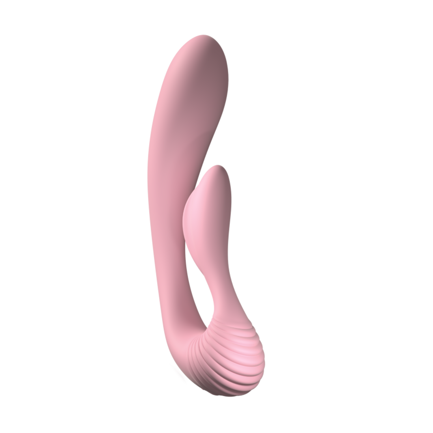 Гибкий вибратор для двойной стимуляции. Обеспечивает одновременное воздействие на клитор и точку G. Длина — 18 см, диаметр — 3,2 см, вес — 311 г. 10 режимов вибрации, 2 мощных мотора. Влагозащита IPX5. Уход: промыть водой с мылом.