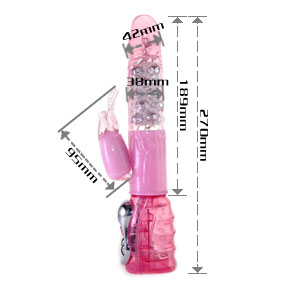 Вибратор с клиторальным стимулятором с усиками. Имеет регулируемый режим вибрациии, ярко выраженную головку, прорисованные вены. Материал изготовления- ТРЕ ( гель). Работает от четырех батареек типа ААА (нет в комплекте). Общая длина 26,5 см, рабочая длина 14 см, максимальный диаметр 4 см, длина стимулятора 7 см, диаметр 3 см. Упаковка- прозрачный пластик.