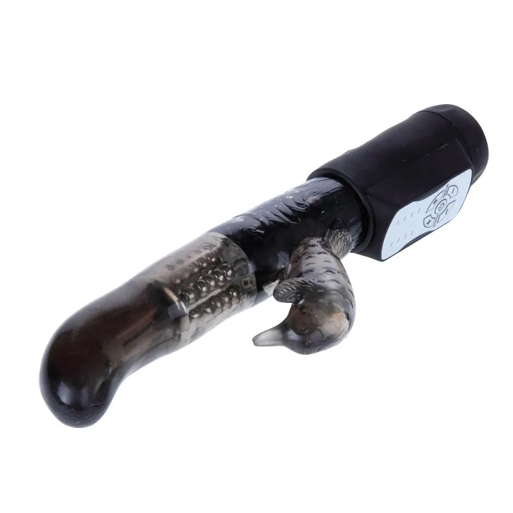 Небольшой вибратор с функциями вращения ствола и мощным клиторальным стимулятором в форме дельфина с 12ю режимами вибрации. Регулируется кнопками на основании. Вращение осуществляется при помощи металлических шариков , расположенных внутри изделия. Очень мягкий, рельефный, имеет не пористую структуру. Водонепроницаемый. Материал изготовления - ПВХ (гель). Работает от трех батареек типа ААА ( в комплект входят). Рабочая длина 12 см, диаметр 3 см, длина стимулятора 6 см, диаметр 3 см.