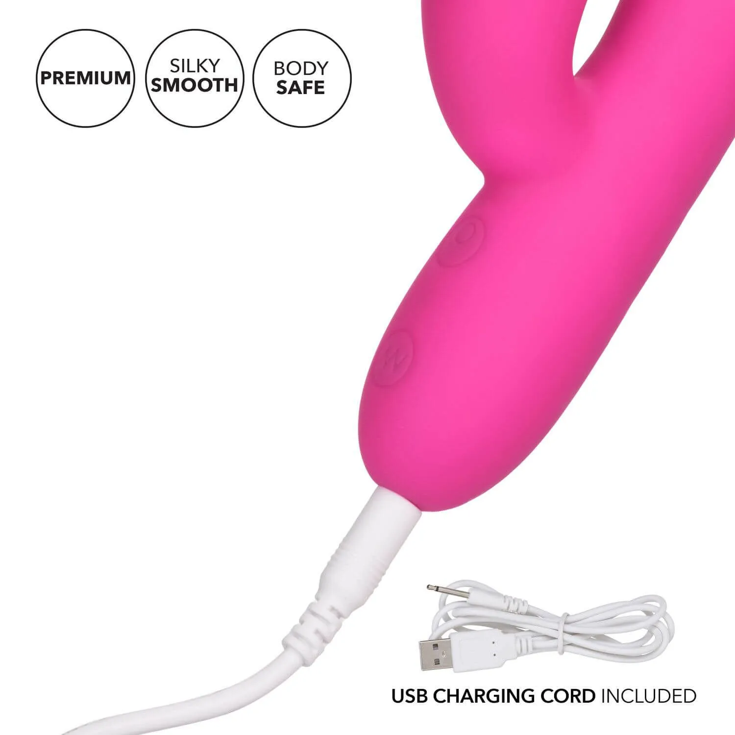 Embrace Massaging Rabbit - это мощный двойной вибратор от известной компании California Exotic с тройным двигателем и функциями вибрации, эскалации и пульсации.