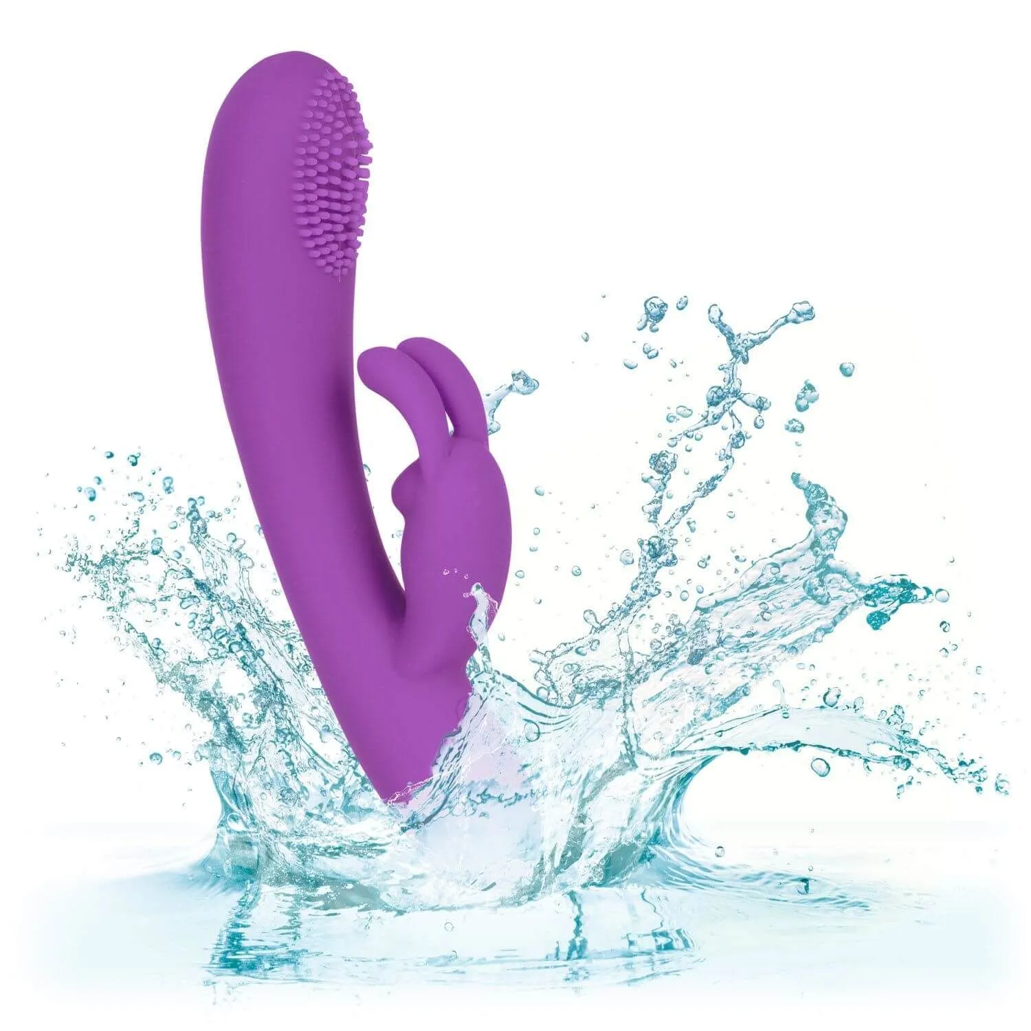 Embrace Massaging Rabbit - это мощный двойной вибратор от известной компании California Exotic с тройным двигателем и функциями вибрации, эскалации и пульсации.