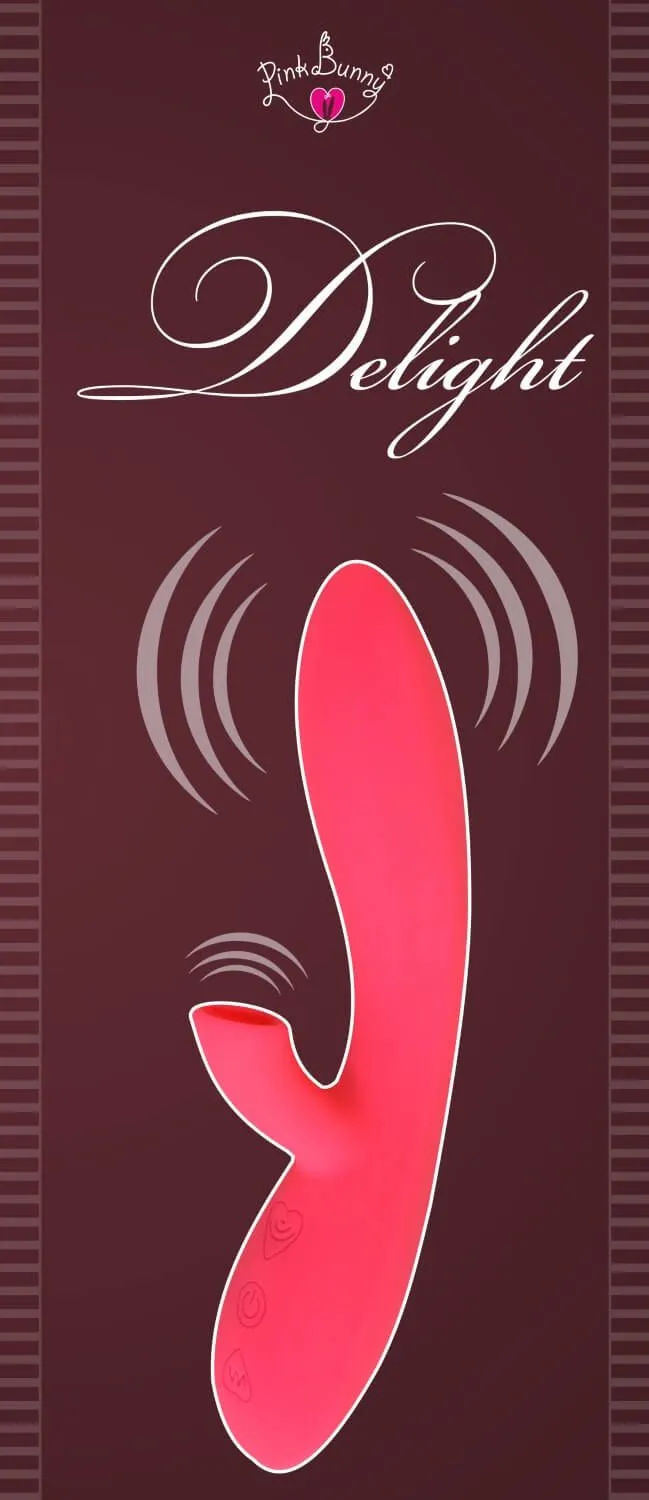 Вибратор Delight обладает целым рядом функций, способных подарить Вам настоящее удовольствие от стимуляции нескольких эрогенных зон. Пока ствол вибратора будет интенсивно массажировать влагалище, небольшой стимулятор с функцией всасывания будет воздействовать на клитор. Всего у Delight есть 12 режимами вибрации, поэтому Вы сможете подобрать для себя подходящий темп или поэкспериментировать с различными вариантами вибраций. Еще одна особенность этого вибратора - функция термостата с возможностью удержания тепла до 40 градусов. Нагрейте его до нужной температуры и ощутите приятный жар, разливающийся по телу.