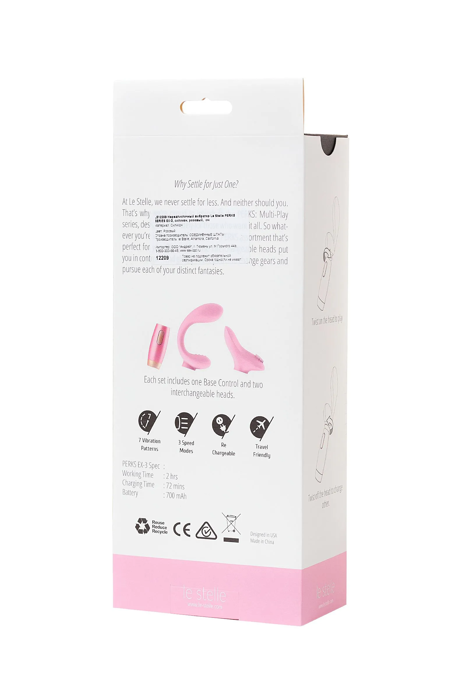 Le Stelle Perks – коллекция для тех, кто не хочет довольствоваться малым. Мощный G-Spot + клиторальный вибратор с моторами на каждом из отростков. Эргономичный дизайн позволяет стимулировать точку G для яркого вагинального оргазма, а дополнительный клиторальный стимулятор с ребристой поверхностью позволит расширить спектр ощущений. Смените насадку, и вы получите клиторальный вибратор, разработанный специально для наружной и точечной стимуляции. Мягкие щетинки из нежнейшего силикона подарят вам неведанные до этого удовольствия. Замена насадки производится парой простых движений, а 7 вариантов вибрации, регулятор скорости и полная водонепроницаемость сделают ваши оргазмы еще ярче.