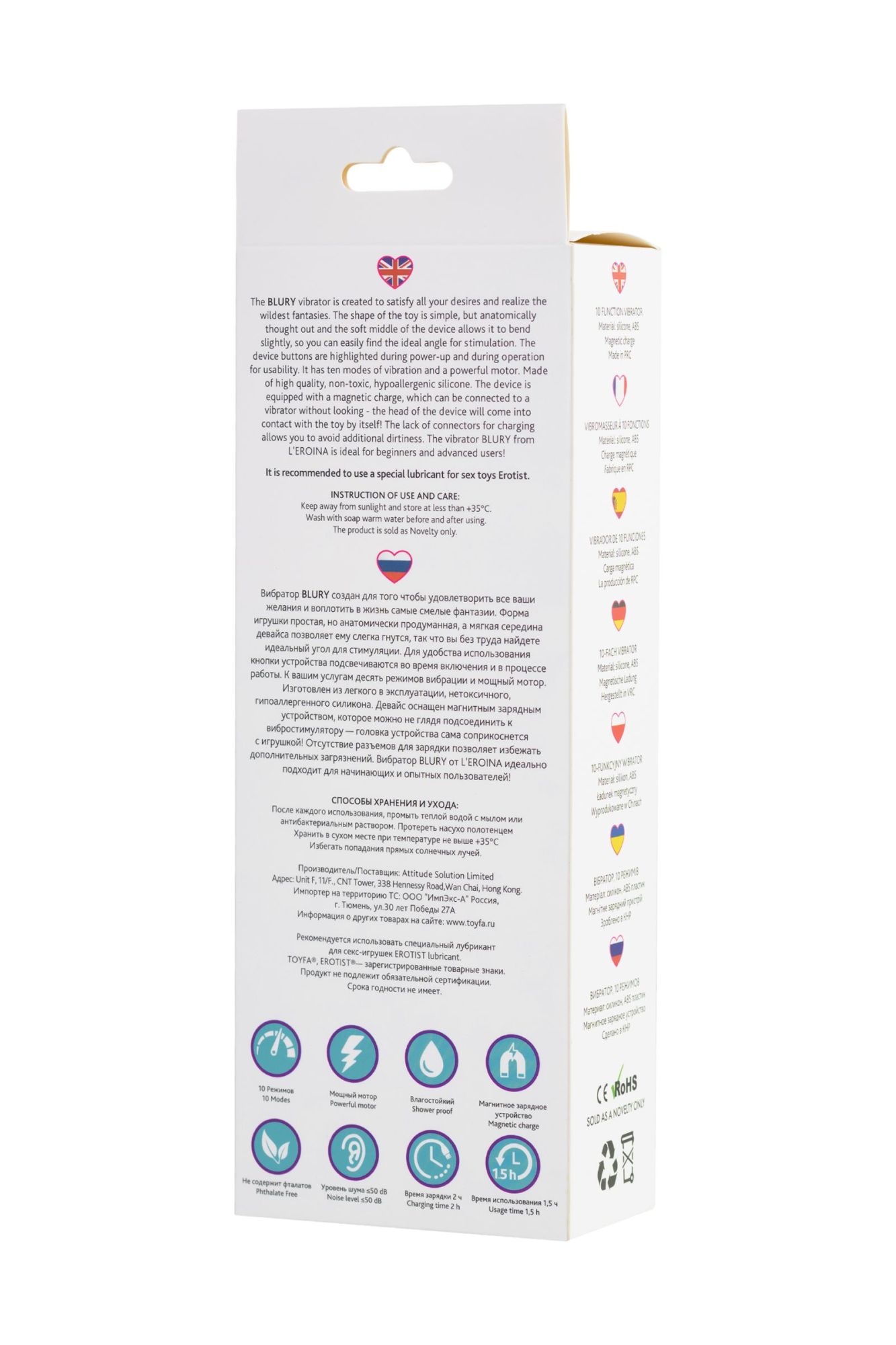 Вибратор BLURY создан для того чтобы удовлетворить все ваши желания и воплотить в жизнь самые смелые фантазии. Форма игрушки простая, но анатомически продуманная, а мягкая середина девайса позволяет ему слегка гнутся, так что вы без труда найдете идеальный угол для стимуляции. Для удобства использования кнопки устройства подсвечиваются во время включения и в процессе работы. К вашим услугам десять режимов вибрации и мощный мотор. Изготовлен из легкого в эксплуатации, нетоксичного, гипоаллергенного силикона. Девайс оснащен магнитным зарядным устройством, которое можно, не глядя, подсоединить к вибростимулятору — головка устройства сама соприкоснется с игрушкой! Отсутствие разъемов для зарядки позволяет избежать дополнительных загрязнений. Вибратор BLURY от L’EROINA идеально подходит для начинающих и опытных пользователей!