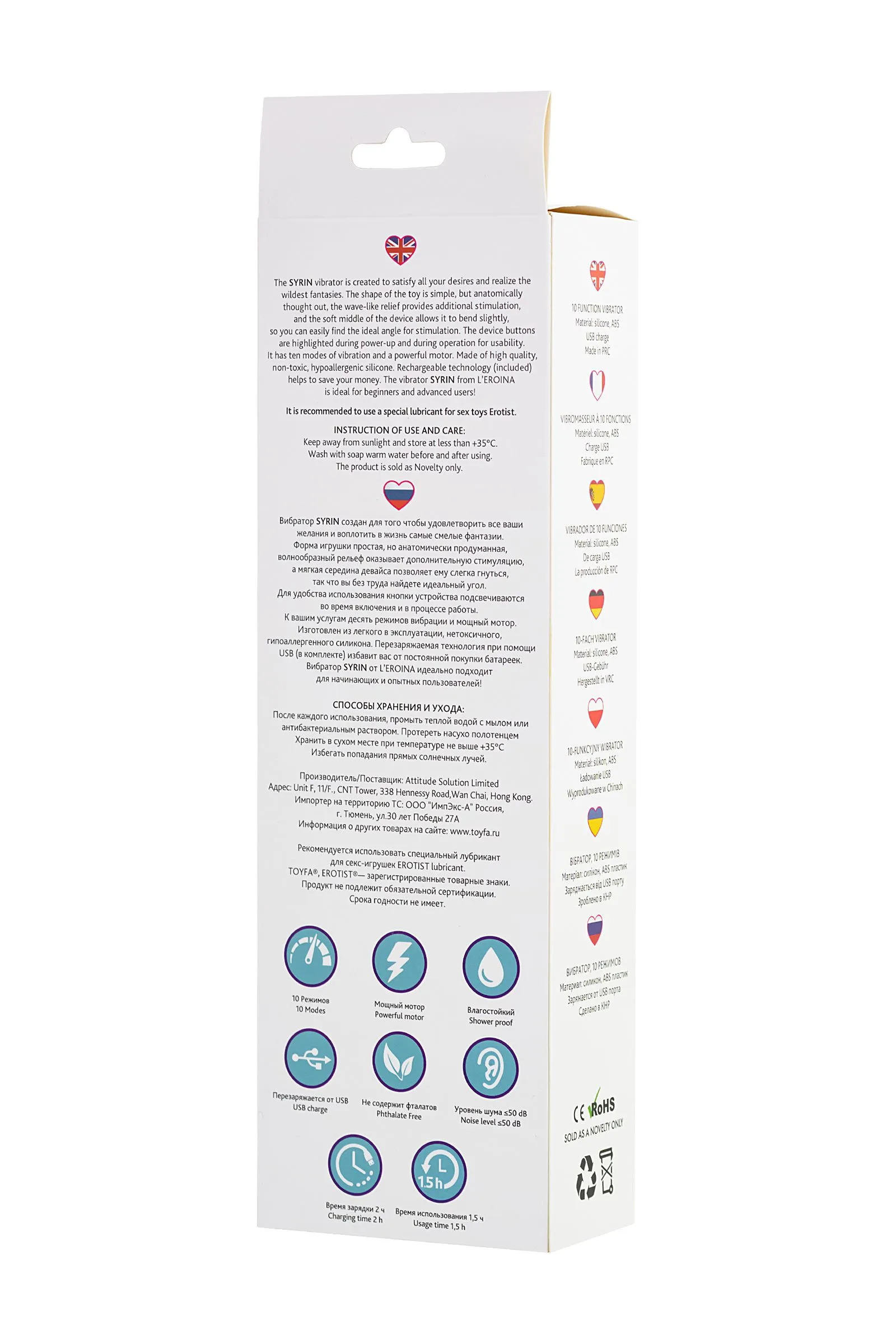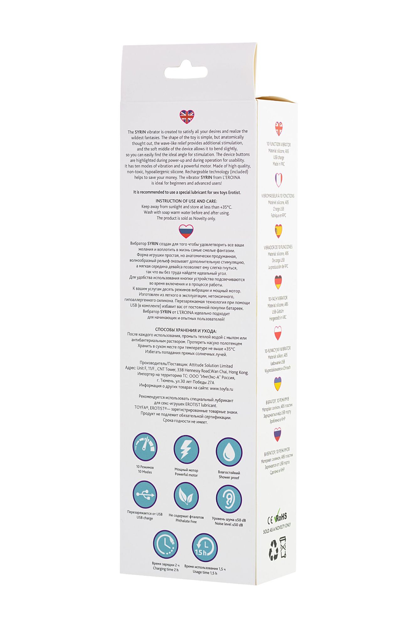Вибратор SYRIN создан для того чтобы удовлетворить все ваши желания и воплотить в жизнь самые смелые фантазии. Форма игрушки простая, но анатомически продуманная, волнообразный рельеф оказывает дополнительную стимуляцию, а мягкая середина девайса позволяет ему слегка гнутся, так что вы без труда найдете идеальный угол для стимуляции. Для удобства использования кнопки устройства подсвечиваются во время включения и в процессе работы. К вашим услугам десять режимов вибрации и мощный мотор. Изготовлен из легкого в эксплуатации, нетоксичного, гипоаллергенного силикона. Перезаряжаемая технология при помощи USB (в комплекте) избавит вас от постоянной покупки батареек. Вибратор SYRIN от L’EROINA идеально подходит для начинающих и опытных пользователей!