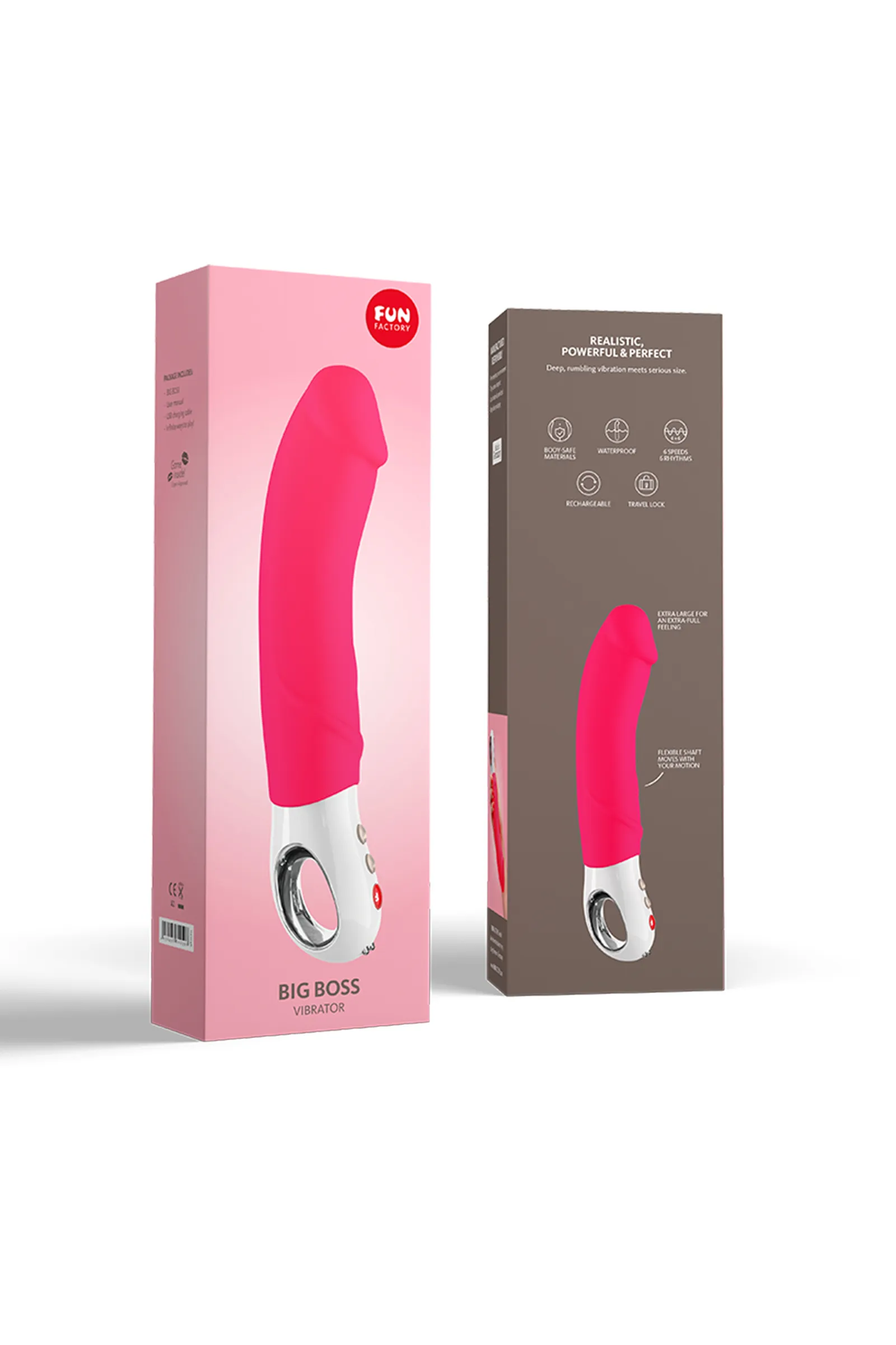 Deluxe вибраторы ставят абсолютно новые масштабы в использовании и функциональности. При включении изделия слышен мягкий звук мощного моторчика: тихо, но, тем не менее, возбуждающе интенсивно! Название говорит само за себя! Внушительный BIG BOSS G5 для тех, кто предпочитает удовольствие в размере XL. Вибратор изготовлен из 100% медицинского силикона, поэтому он достаточно гибок и имеет приятную, бархатистую поверхность. Благодаря легким в обслуживании кнопкам панели управления, можно играючи выбрать нужную вибрацию - от слабой до более мощной. Вибратор BIG BOSS G5 с инновационной технологией зарядки Click 'n' Charge. Особенности: • 100% водонепроницаем • перезаряжаем с помощью зарядного устройства • очень гибкий, мягкий и упругий корпус вибрации • кнопки для интуитивного использования • плавно регулируемая интенсивность вибрации • сильный, тихий и долговечный моторчик • подсветка кнопок управления • 12 интенсивных программ вибрации • корпус вибрации состоит из 100% силикона • USB штекер