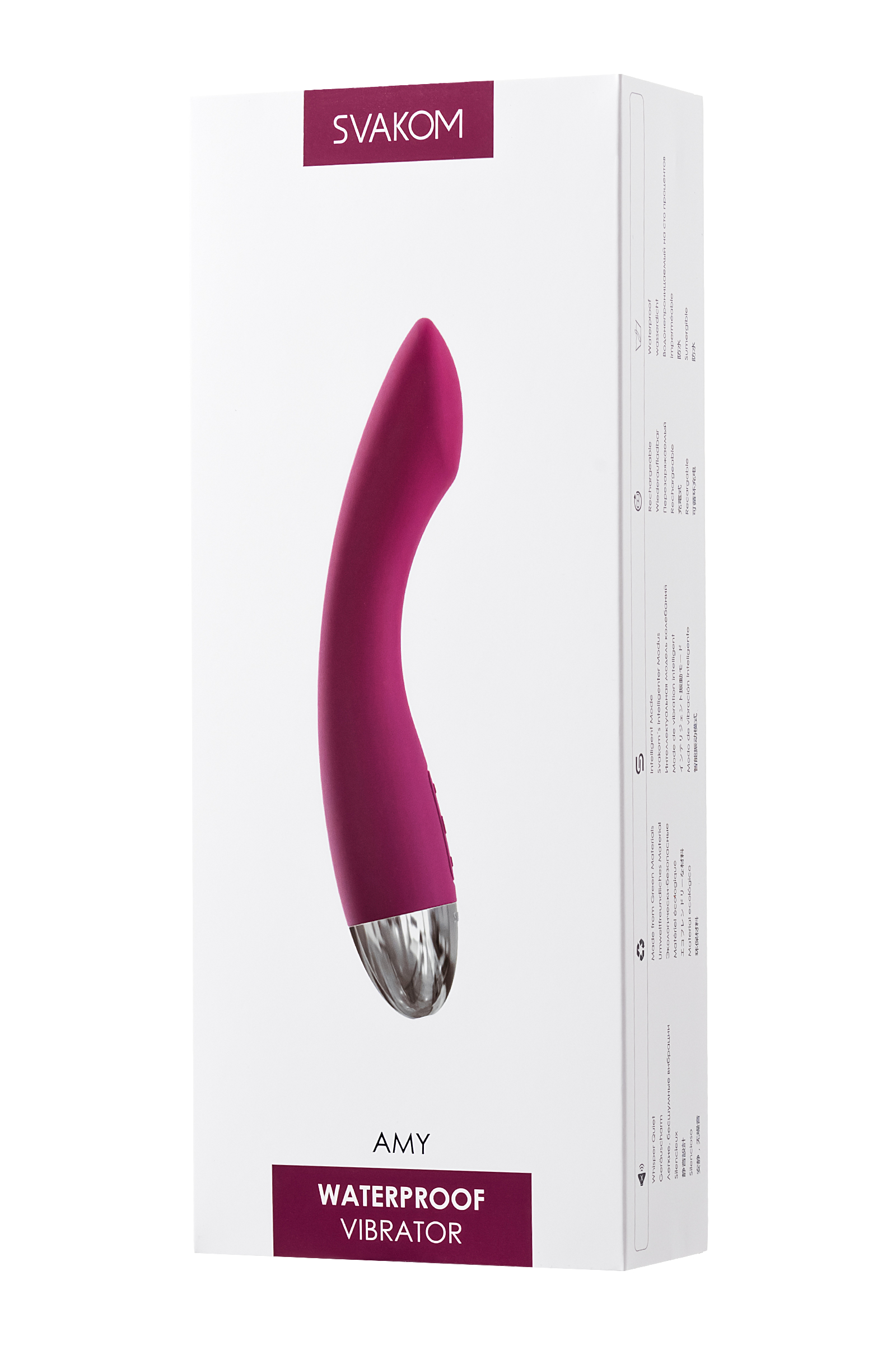 Amy - это влагостойкий массажер анатомической формы. Благодаря новшествам, которые ввела компания Svakom, Amy становится лучшим выбором для тех, кому важна безопасность, удобство и эффективность их секс-игрушек. Благодаря своей форме он фокусируется на самых чувствительных зонах женского тела. Элегантный, средних размеров вибратор со стимулятором для точки G приятен не только на взгляд, но и на ощупь. Amy не содержит фталатов и абсолютно гипоаллергенна. Конструкция позволяет использовать игрушку в душе. Amy имеет 6 режимов работы, которыми можно легко управлять с помощью одного прикосновения. Время зарядки - 1,5 часа. Время длительного использования - 3 часа