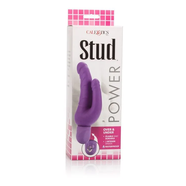 Изумительный вибратор Power Stud Over & Under сможет удовлетворить все Ваши самые тайные желания, ведь он создан специально для двойного проникновения. С этой игрушкой Вы сможете полностью отдаться своему удовольствию, так как он будет интенсивно стимулировать два Ваших самых чувствительных местечка. Большой ствол имеет загнутый кончик, что позволит более точно массажировать эрогенные зоны, в то время как его рельефная поверхность с венками будет усиливать ощущения от стимуляции, доводя Вас до пика страсти. Меньший ствол предназначен для анальных ласк, с ним Вы сможете испытать яркие ощущения, которые сделают любовную игру по-настоящему запоминающейся. Вибратор обладает 3 режимами вибрации, которые волнами разнесутся по Вашему телу, приближая долгожданный оргазм.