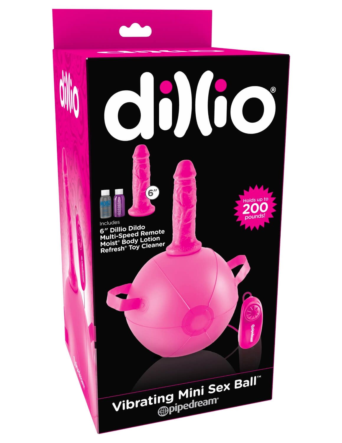 В комплект входит фаллос Dillio Dildo розового цвета, который идеально подходит в качестве насадки для мощного вибратора в центре мяча. Фаллоимитатор имеет ярко выраженную головку и реалистичный дизайн с выпуклыми венками для дополнительной стимуляции. Он изготовлен из качественного материала ПВХ, гипоаллергенен и не содержит фталатов.
