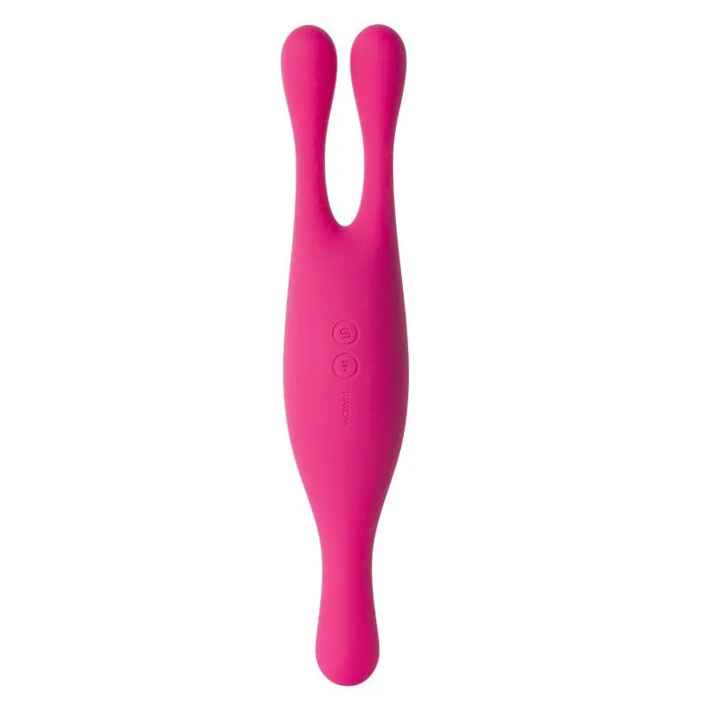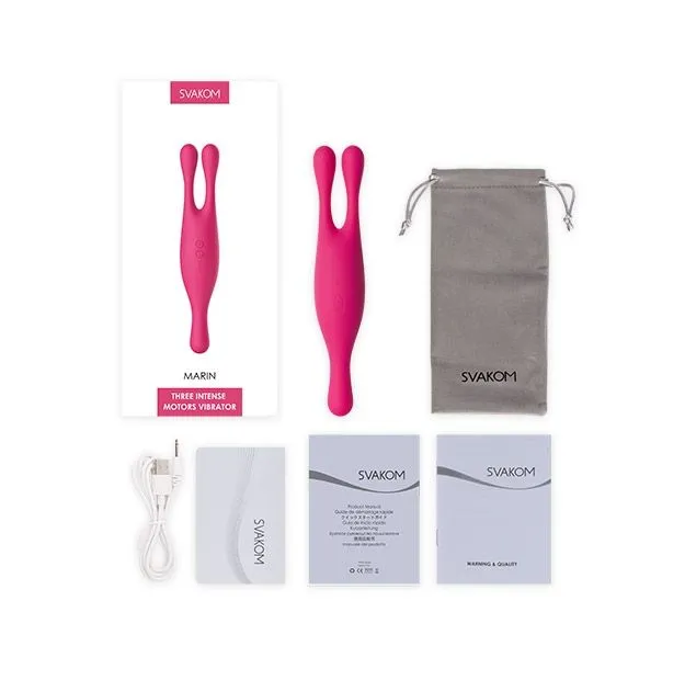 Вибромассажер Marin - это интересная игрушка с тремя моторами от бренда Svakom, использовать которую можно несколькими способами. Благодаря дизайну с двумя длинными ушками наверху, устройство подойдет для внутренней и внешней стимуляции эрогенных зон.