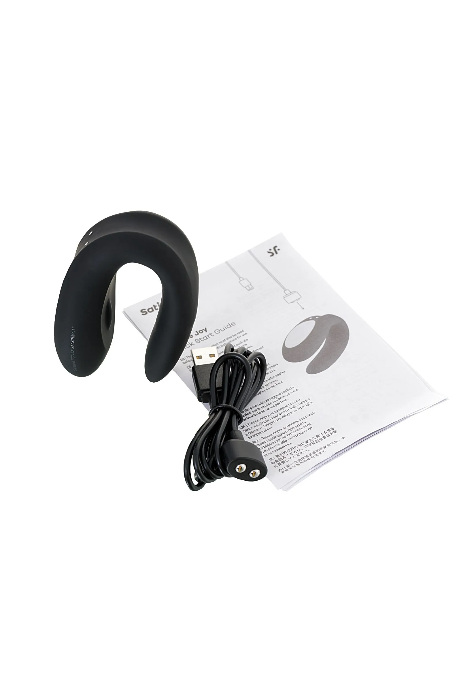 Представляем вам парный вибратор Double Joy от немецкого бренда Satisfyer – идеальное средство для экспериментов и усиления близости в вашей паре. Double Joy имеет уникальную U-образную форму, обеспечивающую двойную стимуляцию. Его эргономичная форма легко скользит между вами, катапультируя вас обоих на седьмое небо. Меньшее ушко заботливо стимулирует зону G и половой член, в то время как второе, более объемное, ласкает клитор. Два мощных моторчика, расположенных в каждом ушке, передают интенсивные вибрации, усиливающие стимуляцию клитора, точки G и пениса, доставляя обоим ошеломляющее наслаждение. Интимный девайс имеет 10 предустановленных режимов вибрации и управляется не только с кнопок на корпусе. Испытайте удовольствие по-настоящему с бесплатной функцией управления при помощи смартфона с поддержкой Bluetooth через приложение Satisfyer Connect, доступное на Android и iOS. Создавайте собственные уникальные режимы вибрации, значительно расширяя возможности предустановленных программ. Девайс способен вибрировать в такт музыке. Satisfyer Connect не имеет границ – передавайте управление удовольствием партнеру на большом расстоянии, делитесь своими вибрациями с другими пользователями по всему миру и контролируйте игрушки других пользователей, управляемые приложением, через видеочат. Плавные изгибы, эргономичный дизайн и шелковистое силиконовое покрытие — фирменный знак Satisfyer, тактильно нежный и приятный на ощупь, он быстро адаптируется к температуре вашего тела. Чтобы получить максимум удовольствия и сохранить материал в наилучшем виде, рекомендуется пользоваться качественной смазкой на водной основе. После использования обязательно очищайте вибратор теплой водой со специальными бактерицидными спреями для интимных товаров. Позвольте себе и вашему партнеру наслаждаться взаимным оргазмом, который оставит вас восторженными и удовлетворенными. Особенности: Инновационные технологии для совместного удовольствия пары. Одновременная стимуляция зоны G, клитора и пениса Современный дизайн и эргономичная форма 10 режимов вибрации и неограниченное количество режимов в приложении Satisfyer Connect с подключением через Bluetooth. Нежный и эластичный силикон без запаха, без аллергенов и вредных для здоровья веществ, цвет – черный. Водонепроницаемый (IPX7) - можно играть в душе и ванной (не более 30 минут, на глубине не более 1 м) Перезаряжаемый, магнитный USB-кабель.