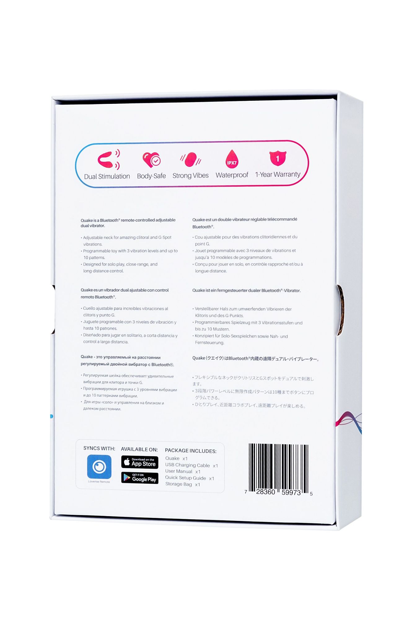 Dolce (ранее Quake) от LOVENSE - это сверхмощная игрушка, которая обеспечивает двойную стимуляцию клитора и зоны G одновременно - регулируемая шейка позволяет вам настроить идеальную форму и обеспечить смешанные интенсивные оргазмы. х 2 Двойной мотор. Двойная мощность. Двойной оргазм - стимуляция зоны G и клитора одновременно Гибкая шейка Регулируемая шейка позволяет подстроить игрушку под любую физиологию, обеспечивая лучший угол соприкосновения с клитором и зоной G. Наслаждайтесь интенсивными клиторальными и вагинальными оргазмами в одно и то же время, исследуя себя, даря себе глубокие ощущения по всему телу. Программируемая функция Настраивайте уровни мощности вибрации по своему вкусу и сохраняйте их для дальнейшего использования. Также запрограммируйте до 10 любимых паттернов! Стабильное подключение Антенна новейшего поколения и чип Bluetooth для любителей игр на большом расстоянии. Многофункциональное приложение позволяет выбрать уровень мощности и разнообразные паттерны и ритмы, соответствующий вашим индивидуальным потребностям. Сильные вибрации Гладкое силиконовое покрытие и сверхсильные вибрации обеспечивают потрясающие оргазмы. 3 уровня мощности 10 паттернов вибрации Водонепроницаемый Работает с приложением Зарядка 70 минут Время работы до 120 минут В режиме ожидания до 240 часов Что в комплекте: Регулируемый Двойной Вибратор с Bluetooth USB Кабель для Подзарядки Инструкция Руководство по Быстрой Настройке Сумка для Хранения Обратите внимание, что вы можете получить упаковку с предыдущим названием продукта “Quake”