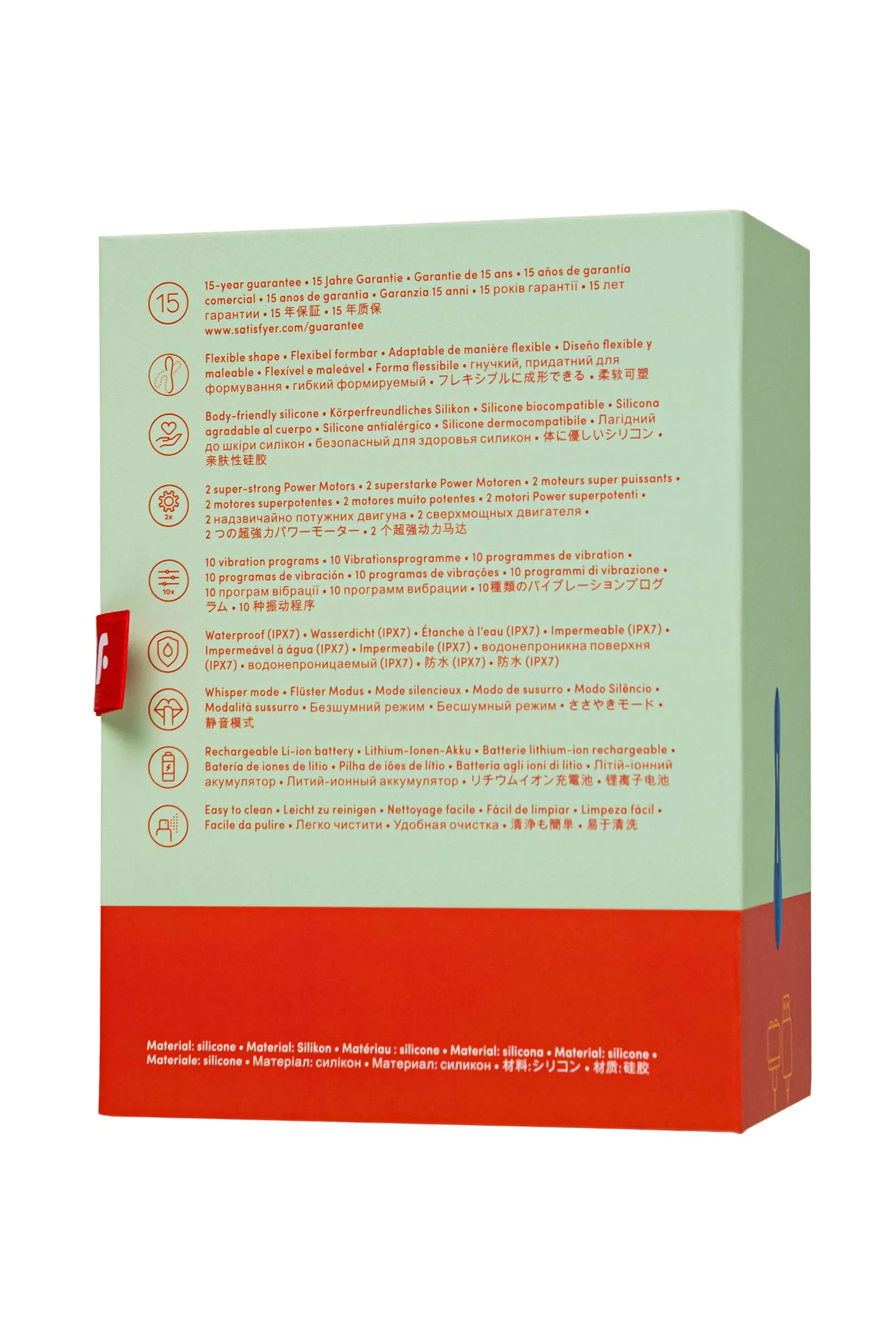 Мультифункциональный гибкий унисекс-вибратор Elastic Game от Satisfyer существенно расширяет возможности сексуального удовольствия в соло игре и паре. Благодаря гибкому корпусу вибратор можно использовать в качестве накладного вибратора, кольца для пениса или парного вибратора. Elastic Game способен подстроиться под индивидуальные особенности тела. Регулируемое положение позволяет зафиксировать и использовать вибратор в любом положении – прямо, сгибать, раздвигать, накладывать, вставлять и делать все, что придет вам в голову. Используйте его как классический погружной вибратор, кольцо для пениса, для стимуляции сосков, или согните его в U-образную форму парного вибратора – более 14 вариаций использования. 2 мощных независимых мотора управляются отдельно, каждый мотор имеет 7 ритмов вибрации и 3 уровня интенсивности. Отдельно управляемые двигатели можно комбинировать друг с другом, обеспечивая 100 возможных комбинаций вибрации. Переключение режимов и двигателей осуществляется с помощью кнопок на корпусе. Элегантный дизайн с небольшим рельефом идеально подходит в качестве первой игрушки для начинающих и для опытных пар. Ребристый конец усиливает внешнюю стимуляцию, а более узкий наконечник обеспечивает точечный массаж зоны G. Шелковистое силиконовое покрытие — фирменный знак Satisfyer, тактильно нежный и приятный на ощупь. Elastic Game позаботится о самых чувственных прикосновениях даже в ванной и душе. Благодаря водонепроницаемости IPX7 игрушку можно погружать под воду до 30 минут. Чтобы получить максимум удовольствия и сохранить материал в наилучшем виде, рекомендуется пользоваться качественной смазкой на водной основе. После использования обязательно очищайте стимулятор теплой водой со специальными бактерицидными спреями для интимных товаров. Особенности: Супер гибкий вибратор, способный подстроиться под любую анатомию Простое управление двумя кнопками. 2 мощных мотора и более 100 комбинаций вибрации. Насыщенный синий цвет и мягкий, эластичный силикон без запаха, без аллергенов и вредных для здоровья веществ. 100% водонепроницаемый - IPX7. Перезаряжаемый, магнитный USB-кабель. 15 лет гарантии от производителя.