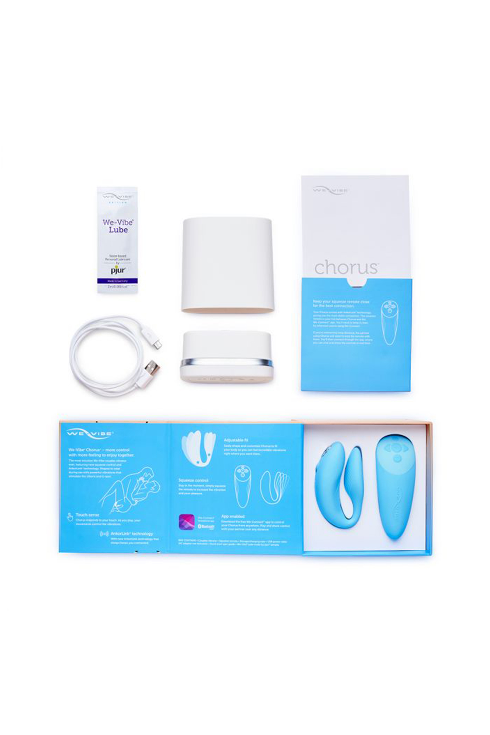 Представьте себе совершенный вечер: вы и ваш любимый, мягкий свет свечей, нежная музыка, а в ваших руках – Chorus от We-Vibe, парный высокотехнологичный вибромассажер, который превращает вашу близость в истинное наслаждение. Это не просто устройство – это искусство страсти. С его помощью вы можете наслаждаться друг-другом и двойной стимуляцией точки G и клитора, создавая моменты непередаваемого блаженства. Каждое тело уникально, и Chorus гарантирует, что прикосновения к вашему телу будут идеальными благодаря регулируемой посадке. Он остается надежно фиксированным во время близости, обеспечивая интенсивные вибрации, которые точно попадают в нужные точки стимуляции. Объемная часть накрывает клитор, малая часть устраивается во влагалище. Во время проникновения оба партнера испытывают удовольствие и ощущают вибрации. Сенсоры Chorus, скрытые под логотипом We-Vibe, чувствуют ваши движения, персонализируя вибрации в соответствии с вашими желаниями. Режим Touch-sense предлагает три варианта настройки, обеспечивая максимальный комфорт и удовольствие. Chorus использует передовую технологию AnkorLink, обеспечивая надежное соединение с вашим устройством We-Vibe. Управление становится еще проще благодаря уникальному Squeeze пульту, который реагирует на силу вашего хвата. Погрузитесь в мир экстаза с бесплатным приложением We-Connect, где вы можете управлять Chorus из любого места, создавать свои собственные вибрации и синхронизировать его с другими продуктами We-Vibe. С Chorus вы можете наслаждаться вибрациями в воде, потому что он абсолютно водонепроницаем. Пульт дистанционного управления защищен от брызг, но не обладает полной водонепроницаемостью. Шелковистое перламутровое покрытие из высококачественного силикона стимулирует тактильное и визуальное удовлетворение. Сложный голубой цвет с мерцающим переливом впечатляет роскошным исполнением. Погрузитесь в мир нежности и страсти с Chorus от We-Vibe - вашим верным спутником в путешествии по волнам удовольствия. С-образный парный вибратор с пультом Два мощных мотора и глубокие вибрации Сенсорное управление Бесплатное приложение We-Connect Водонепроницаем. Пульт с защитой от брызг. USB перезаряжаемый. Chorus заряжается за 120 минут. Удобный и экологически чистый, никаких батареек. Изготовлен из мягкого шелковистого силикона, который нежно взаимодействует с вашим телом. Что в комплекте: We-Vibe Chorus вибратор для пар Squeeze пульт управления Кейс для хранения / зарядная база. Заряжается полностью за 120 минут USB для зарядки через любой USB-порт или широко доступный USB-адаптер питания (не входит в комплект) Краткое руководство пользователя. Иллюстрированное руководство по эксплуатации на нескольких языках We-Vibe Lube — pjur. Пробник 2 мл.