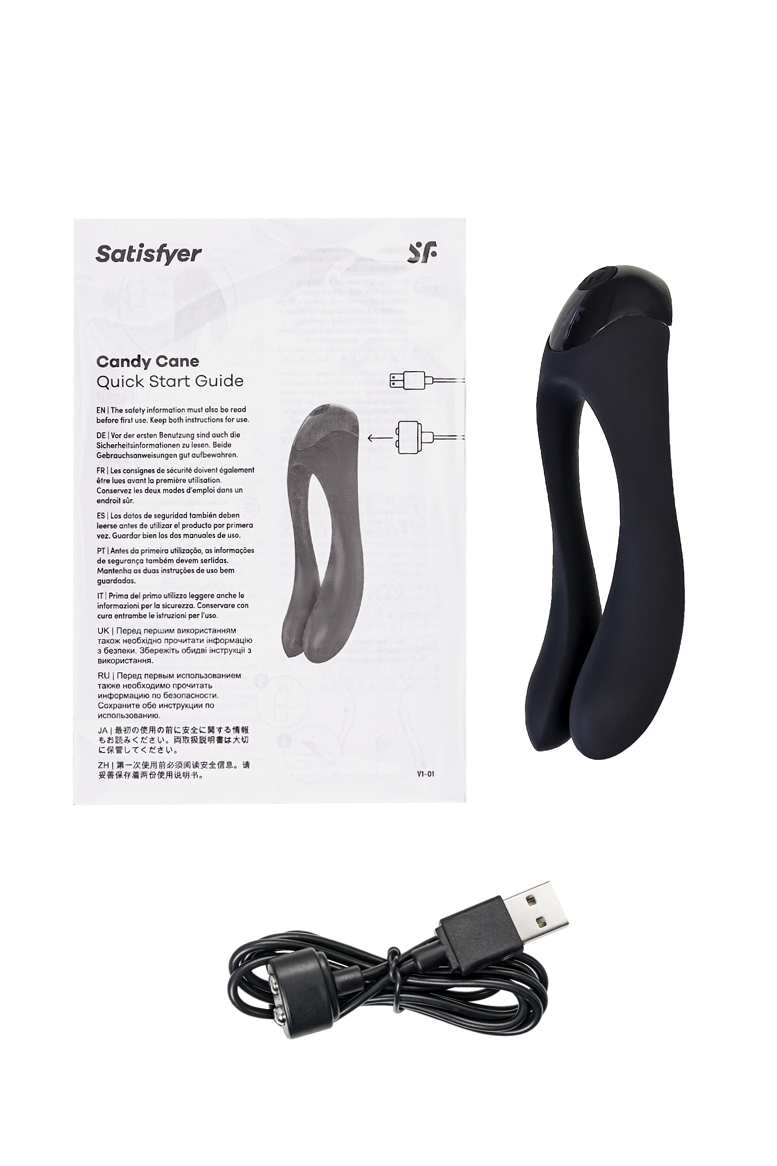 Candy Cane - идеальное решение для новичков в мире секс-игрушек. Он обладает вдохновляющими гибкими «руками»-дужками и двумя мощными двигателями, что делает его универсальным инструментом для разнообразной стимуляции всех эрогенных зон, включая точку G. Доверьтесь Candy Cane от Satisfyer и обретите новый уровень наслаждения в вашей сексуальной жизни. Уникальный Candy Cane привлечет внимание как новичков, так и опытных пользователей, благодаря своей эргономичной форме и двум мощным моторам, расположенным в гибких дужках. Он станет идеальным дополнением к вашим интимным играм соло или с партнером. Candy Cane гарантированно доставит удовольствие лицам любого пола. Например, вы можете использовать Candy Cane в качестве клиторального вибратора, а его подвижные дужки идеально подойдут для массажа точки G. Кроме того, этот вибратор также может использоваться для избирательной стимуляции сосков, промежности или других эрогенных зон. Гибкие дужки восхитительным образом могут стимулировать пенис и мошонку. Множество вариаций использования для наслаждения – все зависит от вашей фантазии и раскрепощенности. Несмотря на свои компактные размеры, Candy Cane - это настоящая электростанция, скрытая за безобидной внешностью вибратора. Его глубокие и мощные вибрации обеспечат вам незабываемые ощущения. В вашем распоряжении 12 разнообразных программ вибрации. Два сверхмощных мотора в каждой дужке обеспечивают интенсивные вибрации, а функция шепота позволяет наслаждаться интимными моментами незаметно для окружающих. Шелковистое силиконовое покрытие — фирменный знак Satisfyer, тактильно нежный и приятный на ощупь. Candy Cane позаботится о самых чувственных прикосновениях даже в ванной и душе. Благодаря водонепроницаемости IPX7 игрушку можно погружать под воду до 30 минут. Чтобы получить максимум удовольствия и сохранить материал в наилучшем виде, рекомендуется пользоваться качественной смазкой на водной основе. После использования обязательно очищайте стимулятор теплой водой со специальными бактерицидными спреями для интимных товаров. Особенности: Унисекс-вибратор с двумя дужками для стимуляции любых эрогенных зон. Простое управление одной кнопкой. 2 мощных мотора и 12 режимов вибрации. Глубокий черный цвет и нежный, эластичный силикон без запаха, без аллергенов и вредных для здоровья веществ. 100% водонепроницаемый - IPX7. Перезаряжаемый, магнитный USB-кабель. 15 лет гарантии от производителя.