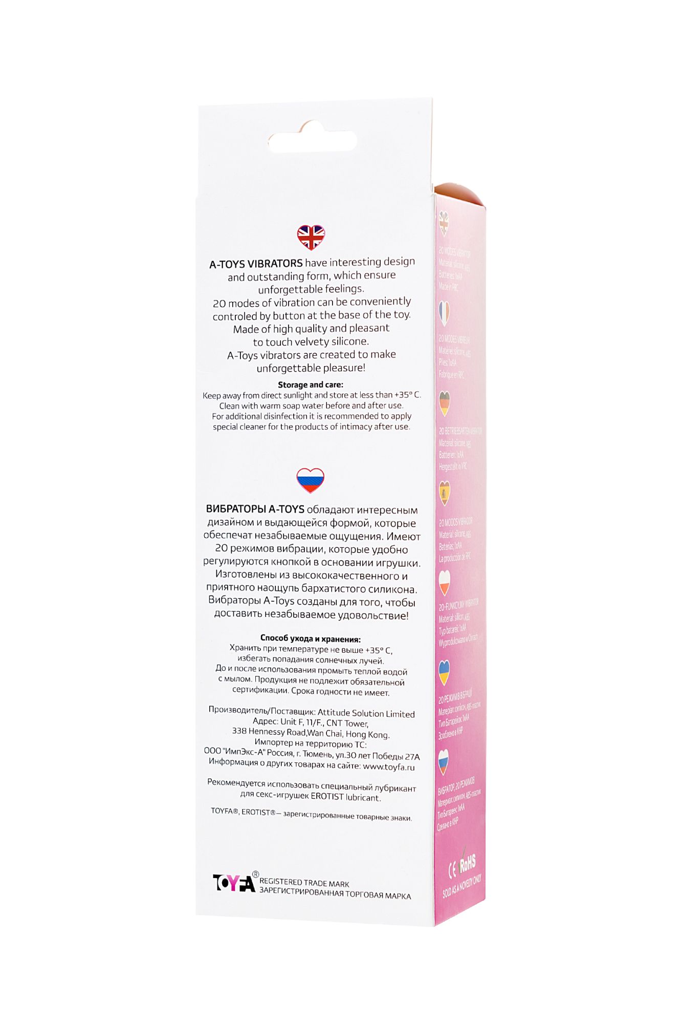 Вибраторы A-Toys — обладают интересным дизайном и выдающейся формой, которые обеспечат незабываемые ощущения. Имеют 20 режимов вибрации, которые удобно регулируются кнопкой в основании игрушки. Изготовлены из высококачественного и приятного наощупь, бархатистого силикона. Вибраторы A-Toys созданы для того, чтобы доставить незабываемое удовольствие!