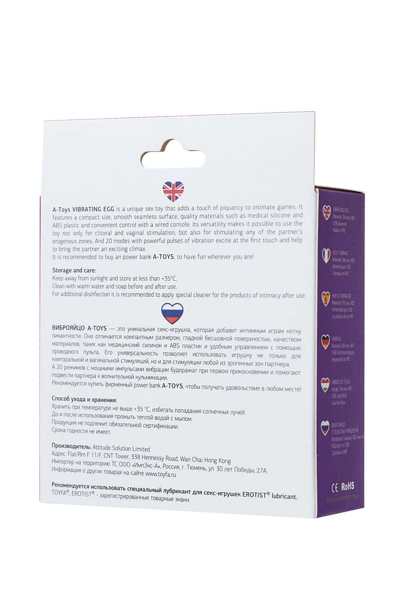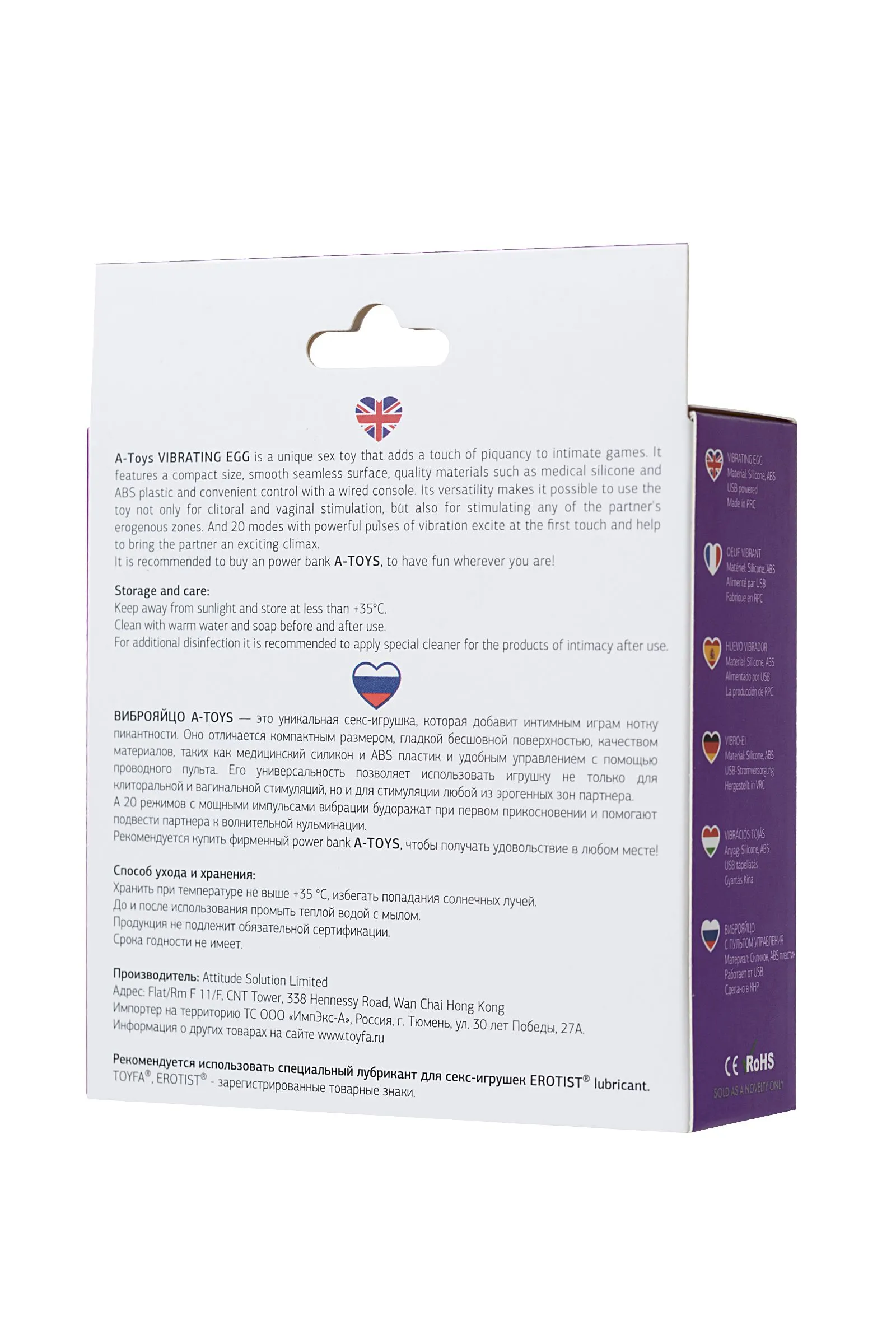 Виброяйцо A-Toys — это уникальная секс-игрушка, которая добавит интимным играм нотку пикантности. Оно отличается компактным размером, гладкой бесшовной поверхностью, качеством материалов, таких как медицинский силикон и ABS пластик и удобным управлением с помощью проводного пульта. Его универсальность позволяет использовать игрушку не только для клиторальной и вагинальной стимуляций, но и для стимуляции любой из эрогенных зон партнера. А 20 режимов с мощными импульсами вибрации будоражат при первом прикосновении и помогают подвести партнера к волнительной кульминации. Рекомендуется купить фирменный power bank TOYFA, чтобы получать удовольствие в любом месте! Максимальный выходной ток источника питания — 1 А.