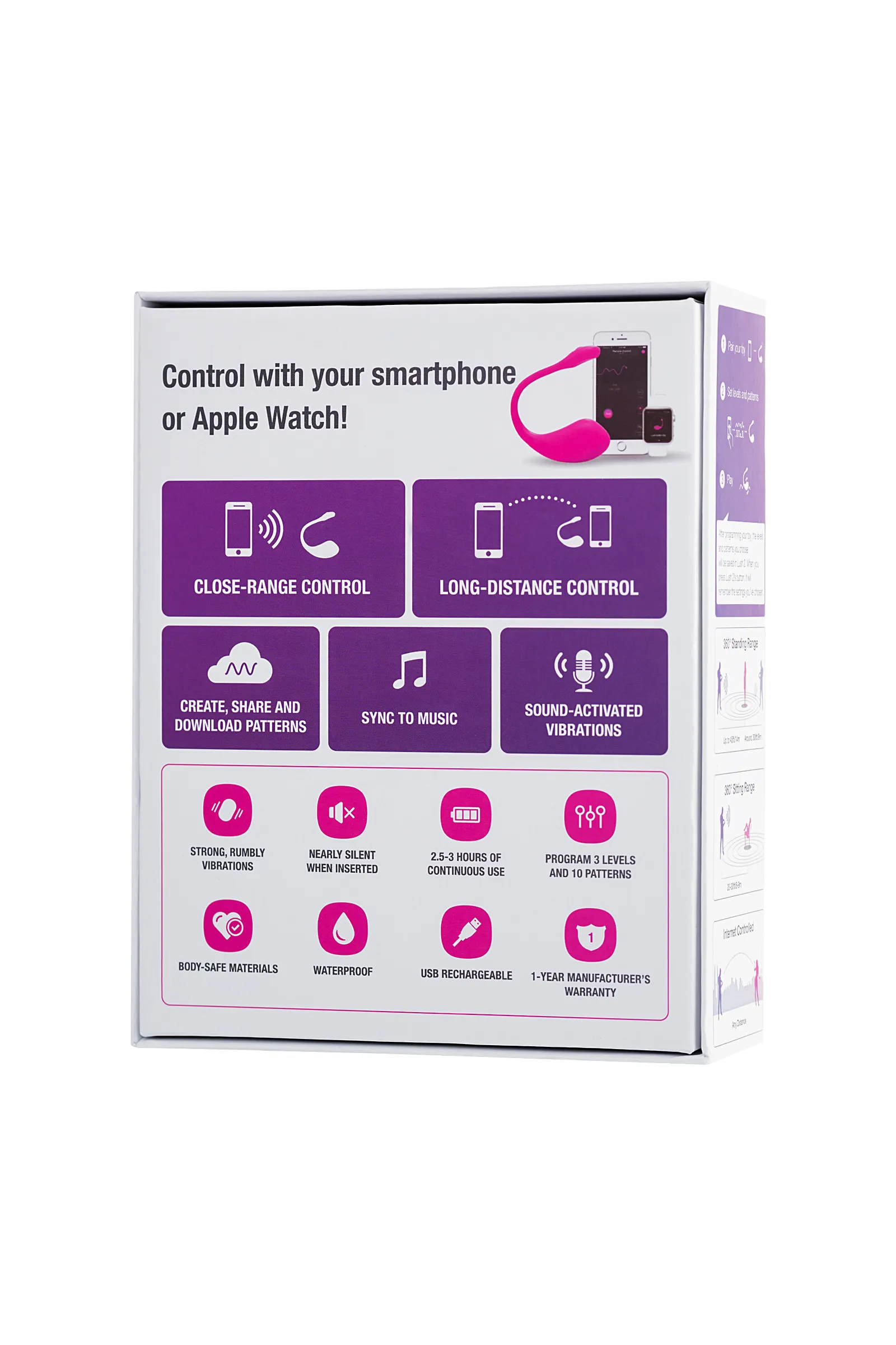 Lush 2 - это переработанная версия вибропули Lush, с более мощным мотором в основании пули. Благодаря новой кнопке и расположению чипа Bluetooth в «отростке», улучшается взаимодействие с пользователем. Виброплуя предназначена для одиночной игры, скрытой публичной игры и совместное использование парами на длинной дистанции. Оборудование полностью оптимизировано для публичных игр, поэтому оно мощное, но тихое. Особенности: Оптимизированная кнопка включения / выключения, расположенная на конце антенны; Bluetooth, расположенный на конце антенны, также обеспечивает улучшение связи в сравнении со старой версией; Более сильные вибрации по сравнению с прошлой версией Lush; Close Range Control - Интерфейс управления касанием и скольжением в вашем смартфоне идеально подходит для одиночной игры или прелюдии с партнером; Customize Your Vibrationsв - режиме программирования в приложении вы можете сохранить до 10 шаблонов; Long Distance Control - приложение позволяет партнеру контролировать ситуацию с любого расстояния необходим только интернет или Bluetooth; Music Based Vibrations - синхронизируйте свою любимую музыку. Приложение будет использовать микрофон вашего смартфона и вибрировать в зависимости от окружающих вас звуков. Материал: Силикон; Вес:73 г; Аккумулятор: литий-ионный; Мотор: 1 мотор в основании; Время использования: 1 скорость 192 мин / 2 скорость 170 мин / 3 скорость 160 мин Время зарядки: 70 мин; Режим ожидания до 120 часов; Водонепроницаемость: IPX7; Вложение: Игрушка, USB-кабель для зарядки, Руководство пользователя, Руководство по быстрой установке