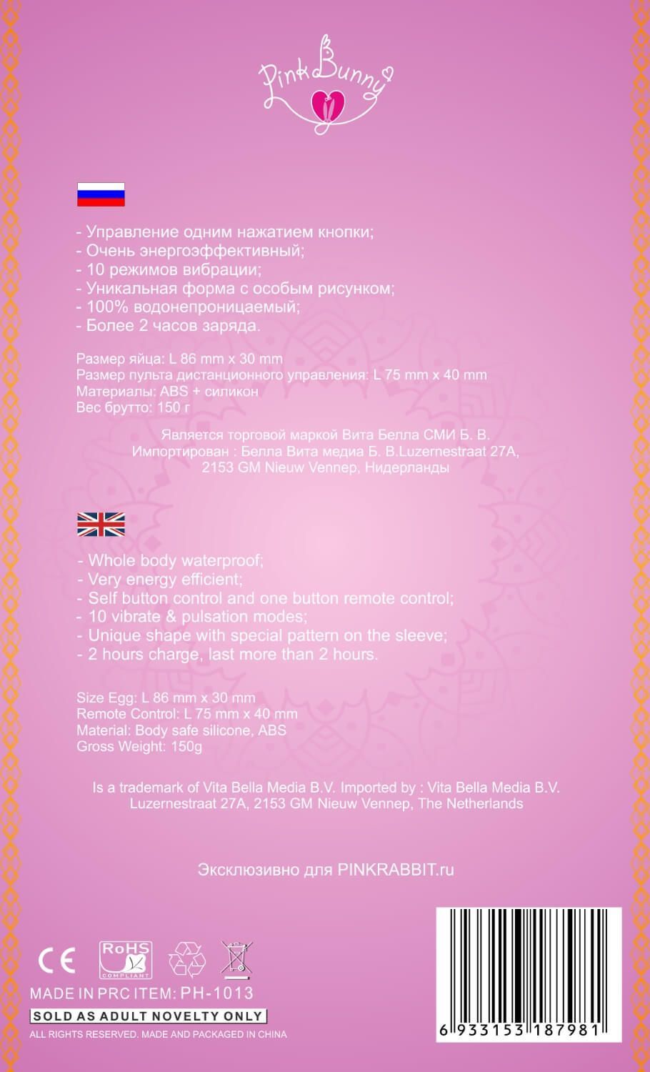 —Виброяйцо Pink Bunny Lust Roze, розовое