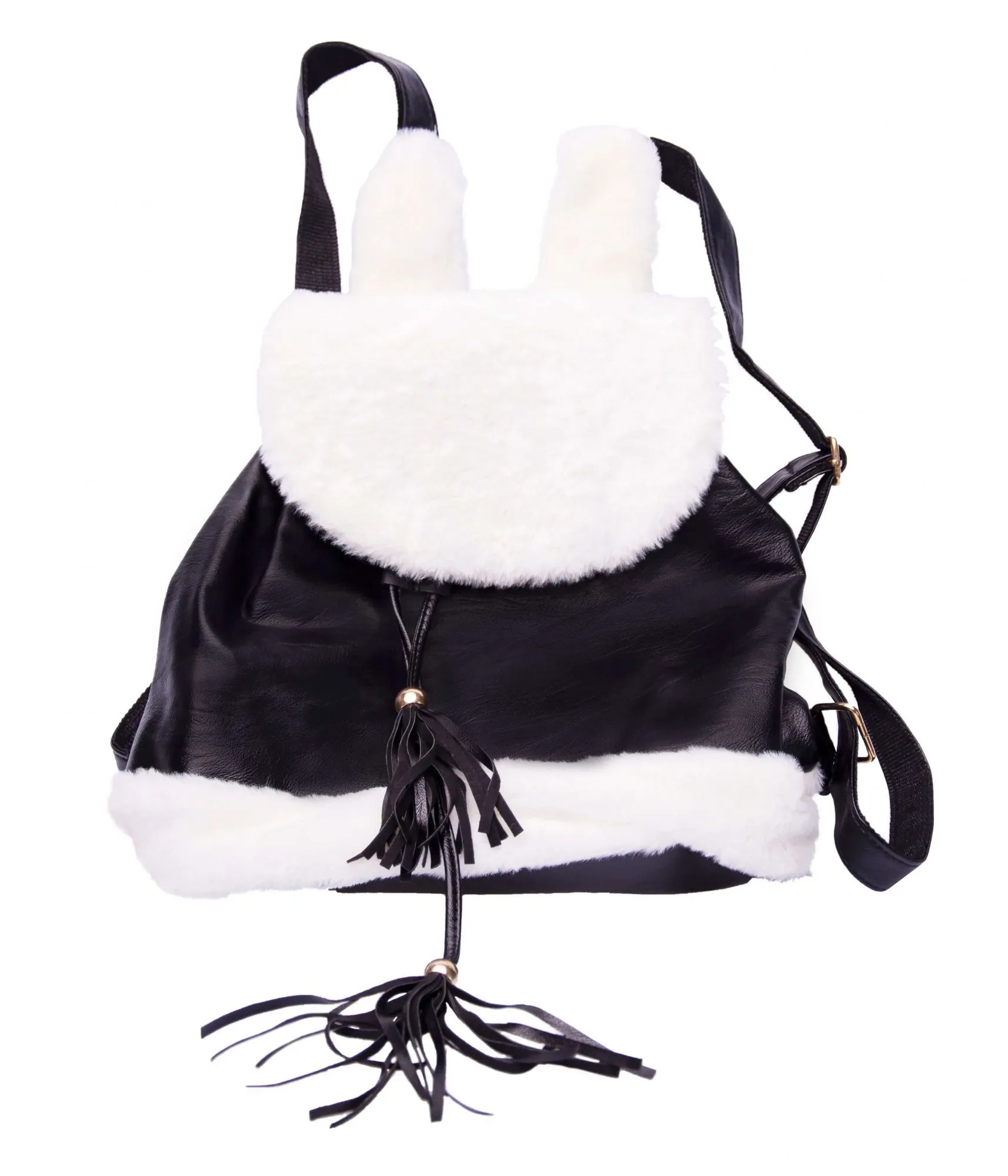 Чёрный рюкзак из экокожи с пушистым дном и ушками.