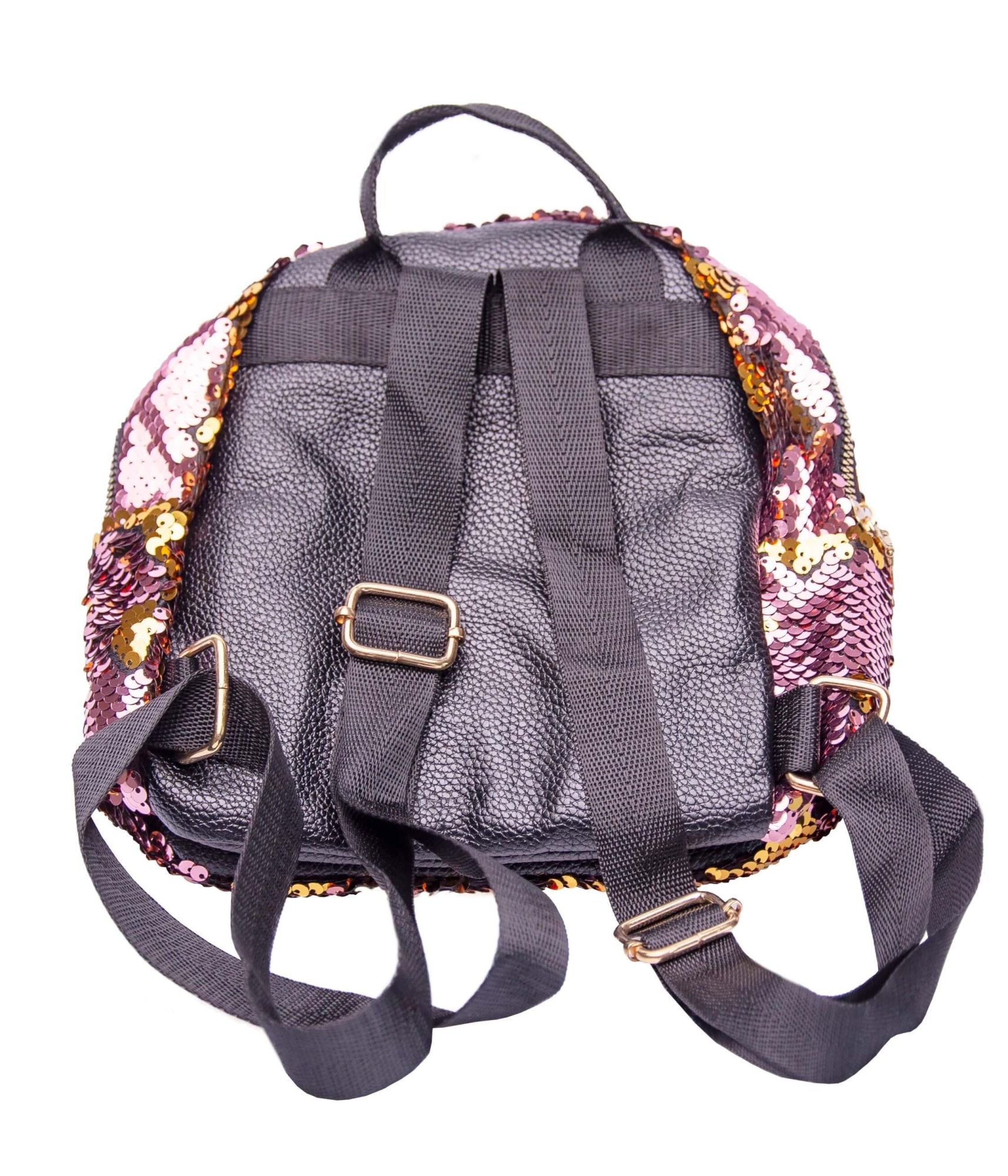 Очаровательный коричнево-розовый рюкзак с ушками, усыпанный пайетками.
